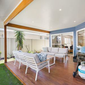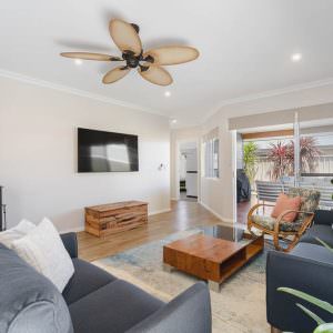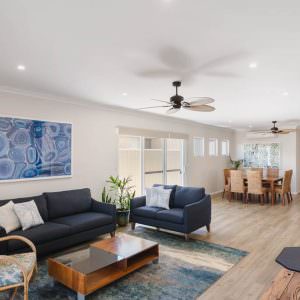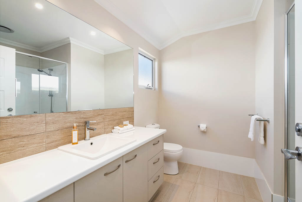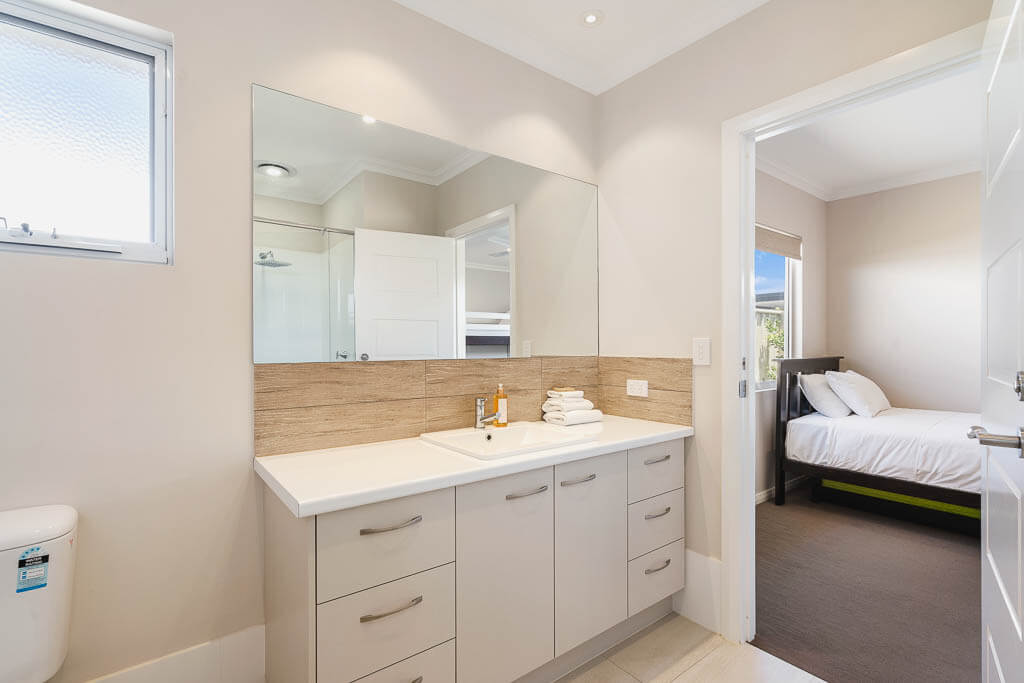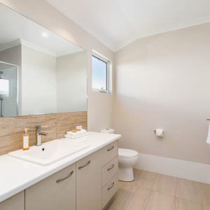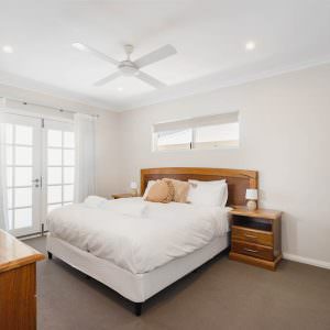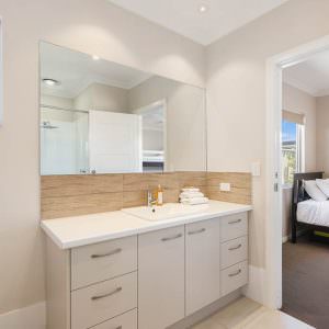 “Internally, it’s white and bright in appearance and very functional in design layout. With the master bedroom at the front of the home and the 2 minor bedrooms to the rear, it provides complete privacy from the kids or holiday guests. The minor bedrooms are extra large and include double slider robes. This zone has a bonus semi style ensuite to accommodate both rooms.
