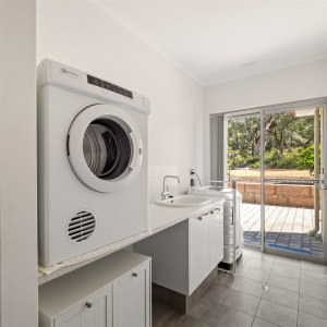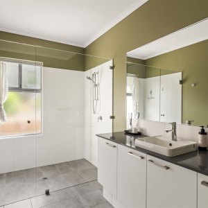 There are three bathrooms in total, plus a powder room. Two living zones ensure space for downtime, kids, or quiet reading. The kitchen is fitted with a gas stovetop, Corian benchtops, Nespresso-compatible pod machine, and all essentials. There’s a laundry with washer/dryer, and fast Starlink Wi-Fi throughout.
