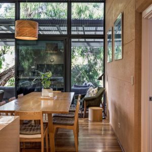 There are three spacious bedrooms, two modern bathrooms and a wonderful living/kitchen/meals area. This opens via large glass sliding doors onto a large covered timber deck in a natural garden setting with magnificent views over the adjacent vineyard.