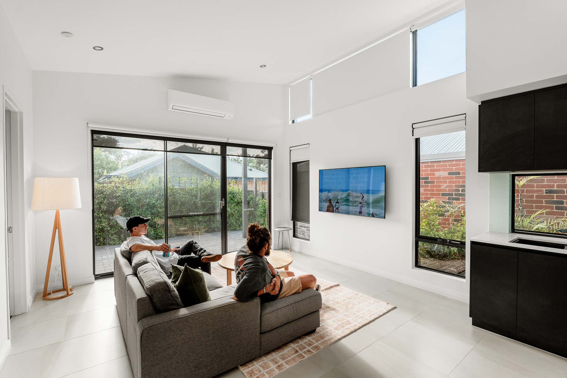 Step inside this beautifully designed home, featuring two king bedrooms, each with a private ensuite. The brand-new fitout ensures a light-filled living and dining space, perfect for couples, friends, or small families. The spacious kitchen, living, and dining areas provide a comfortable and stylish setting for your stay. Each bedroom offers privacy and comfort with modern ensuites.