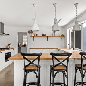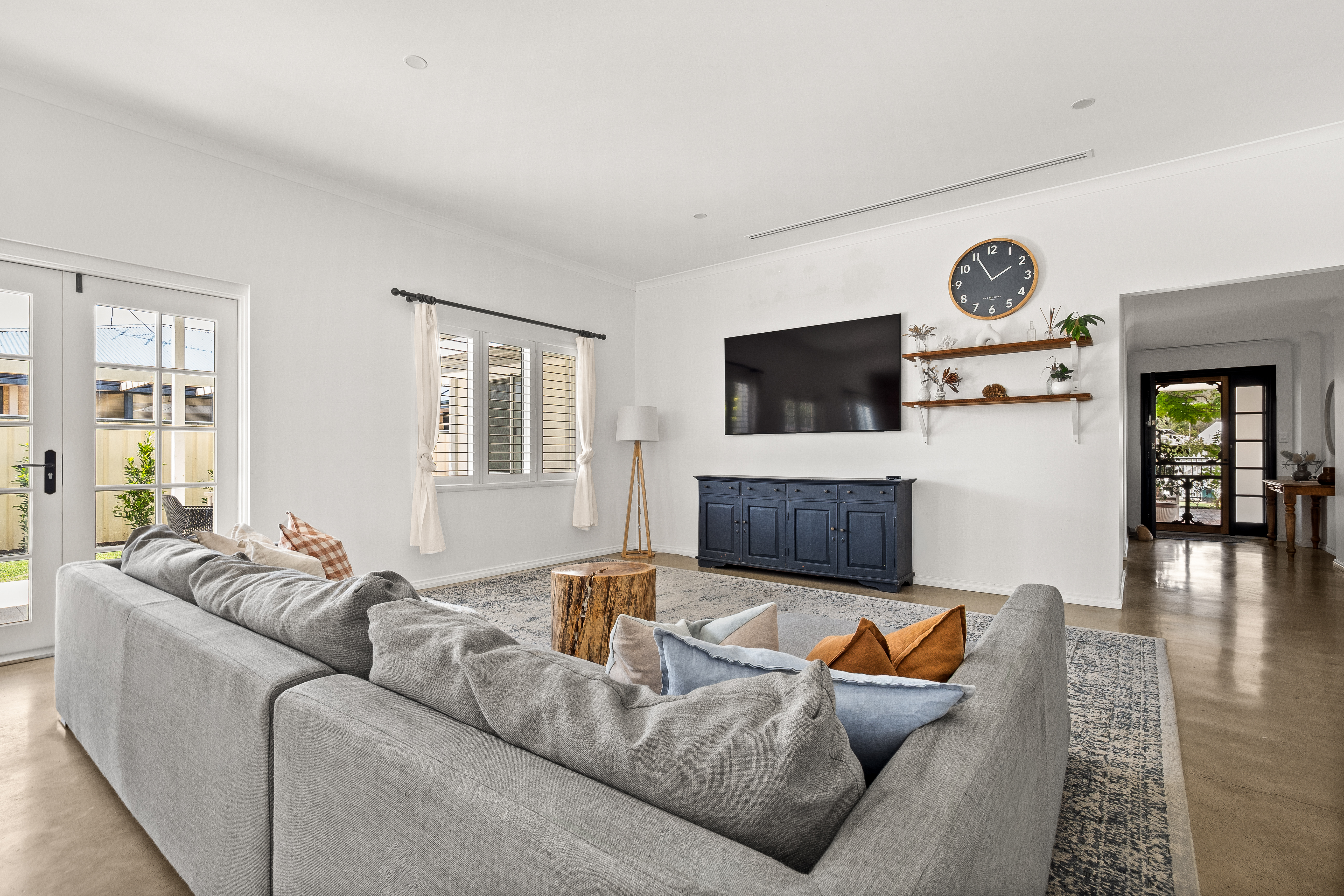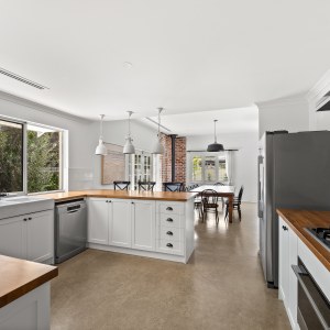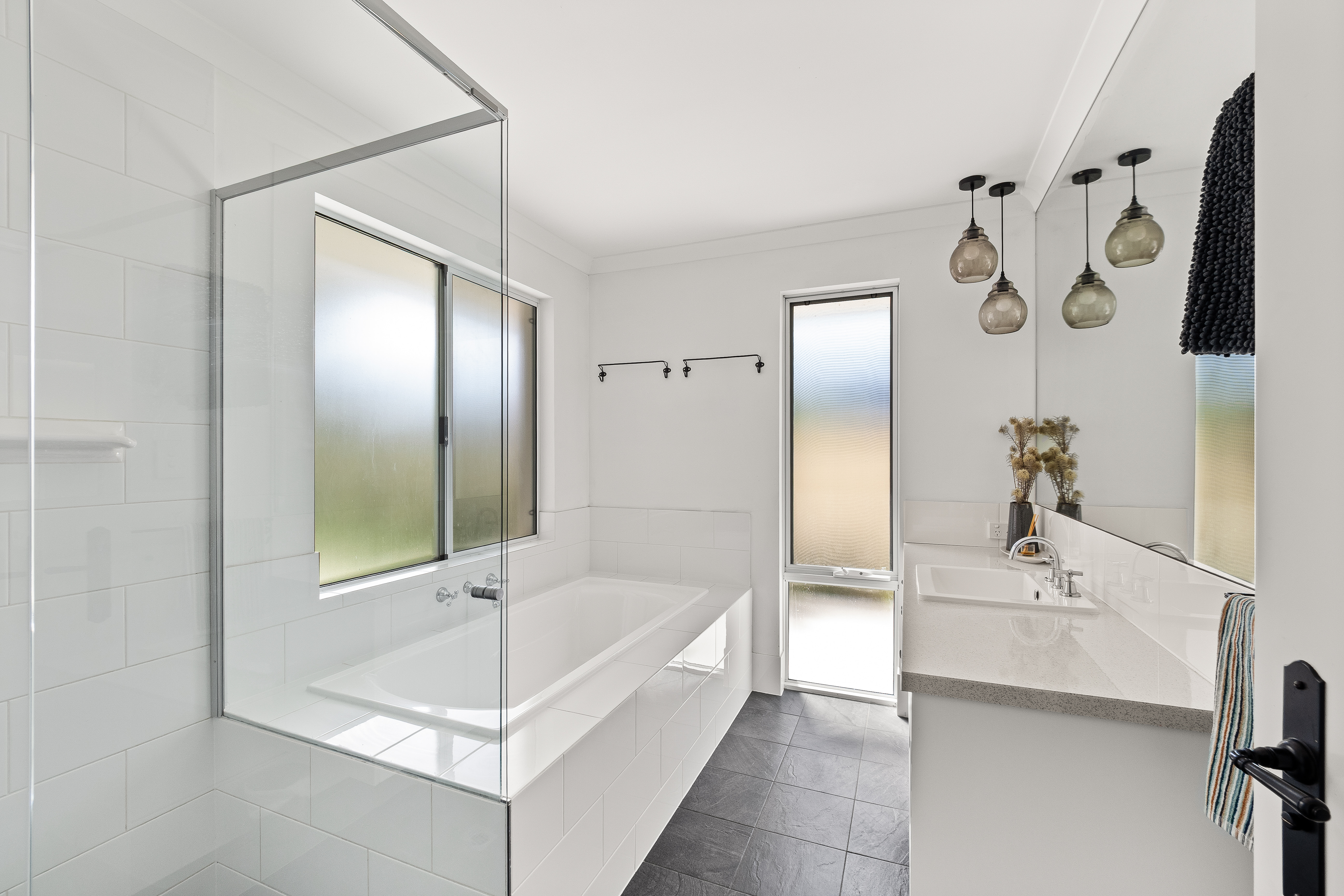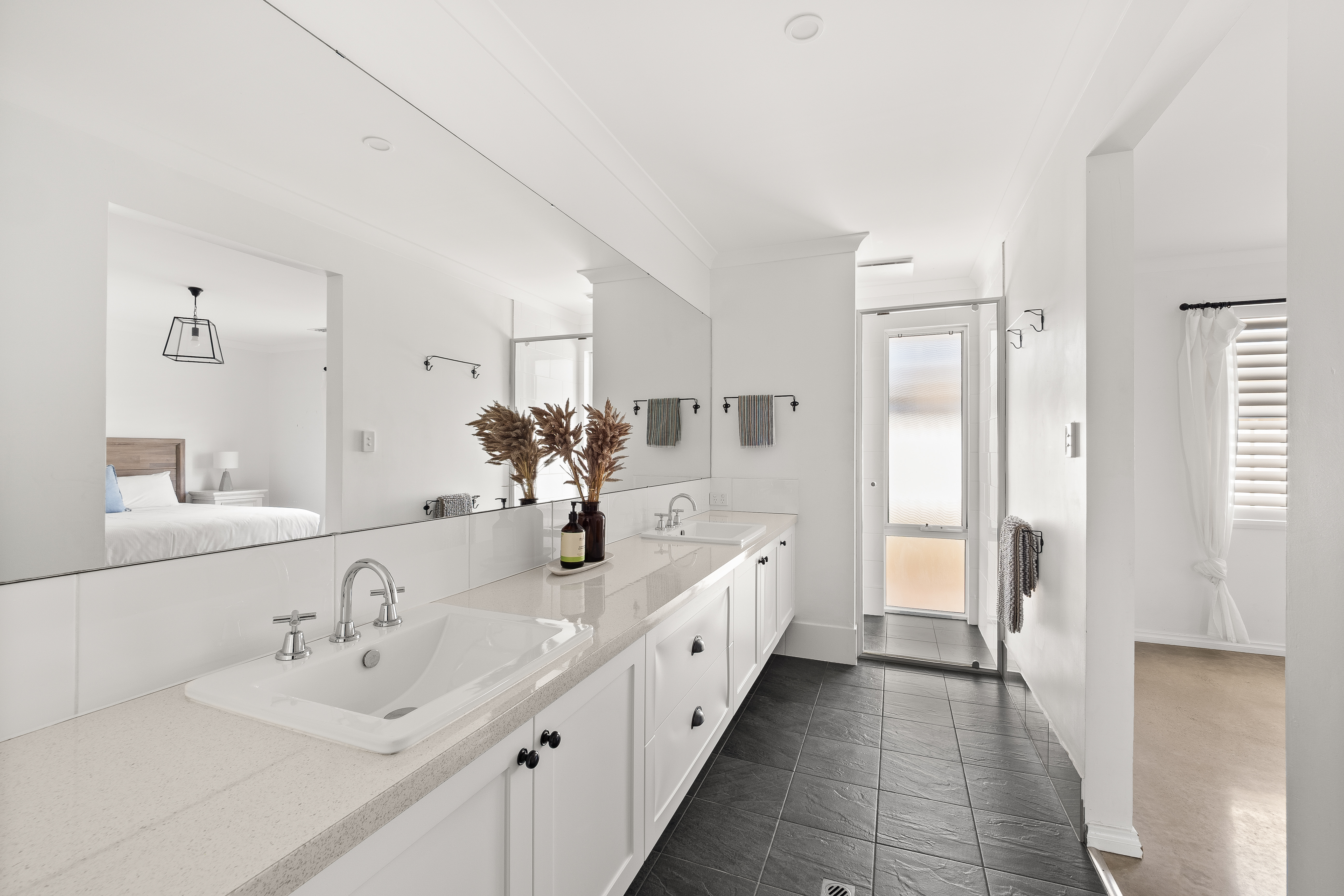 You’ll feel space as you walk into the property and love the open plan dining and kitchen area with the afternoon sunlight streaming in. This area flows onto the neat alfresco and lawn area out the side. Four bedrooms and the fifth master bedroom with a private ensuite are at the front of the house, plus a shared bathroom and separate WC and laundry.