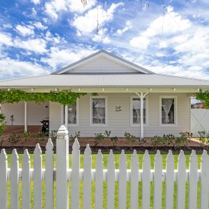 Suitable for couples and families, it has plenty of space, a fireplace and air conditioning, and an enclosed grassed front and back yard. It is fully furnished, with linen and extras, a large master bedroom and an ensuite. The other four bedrooms have a separate full-sized bathroom and WC.