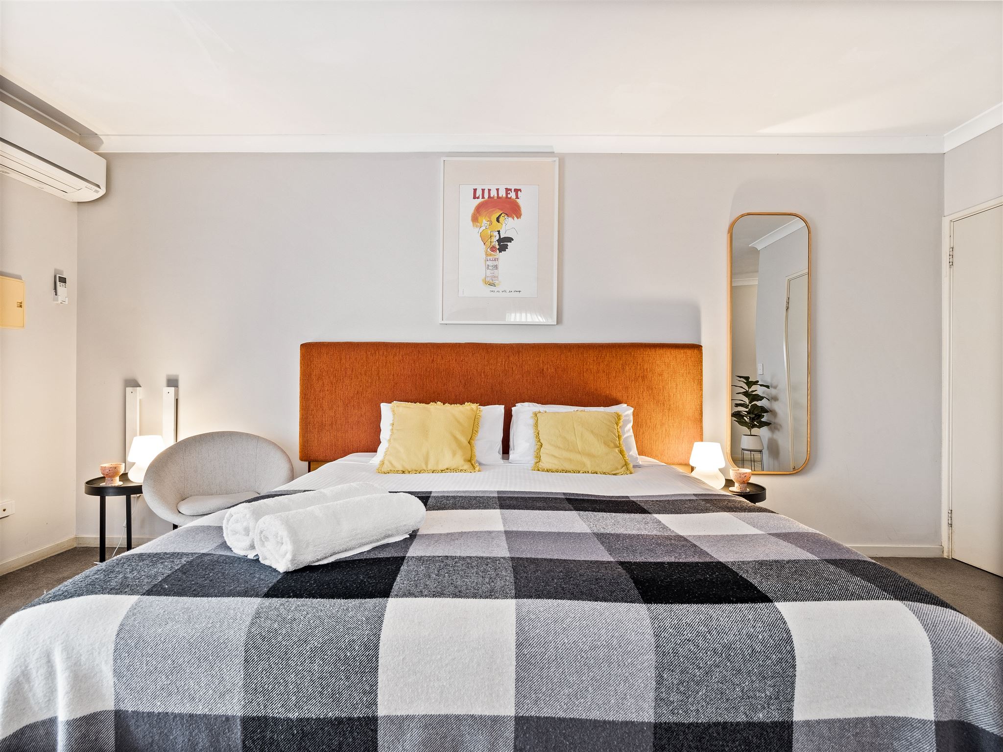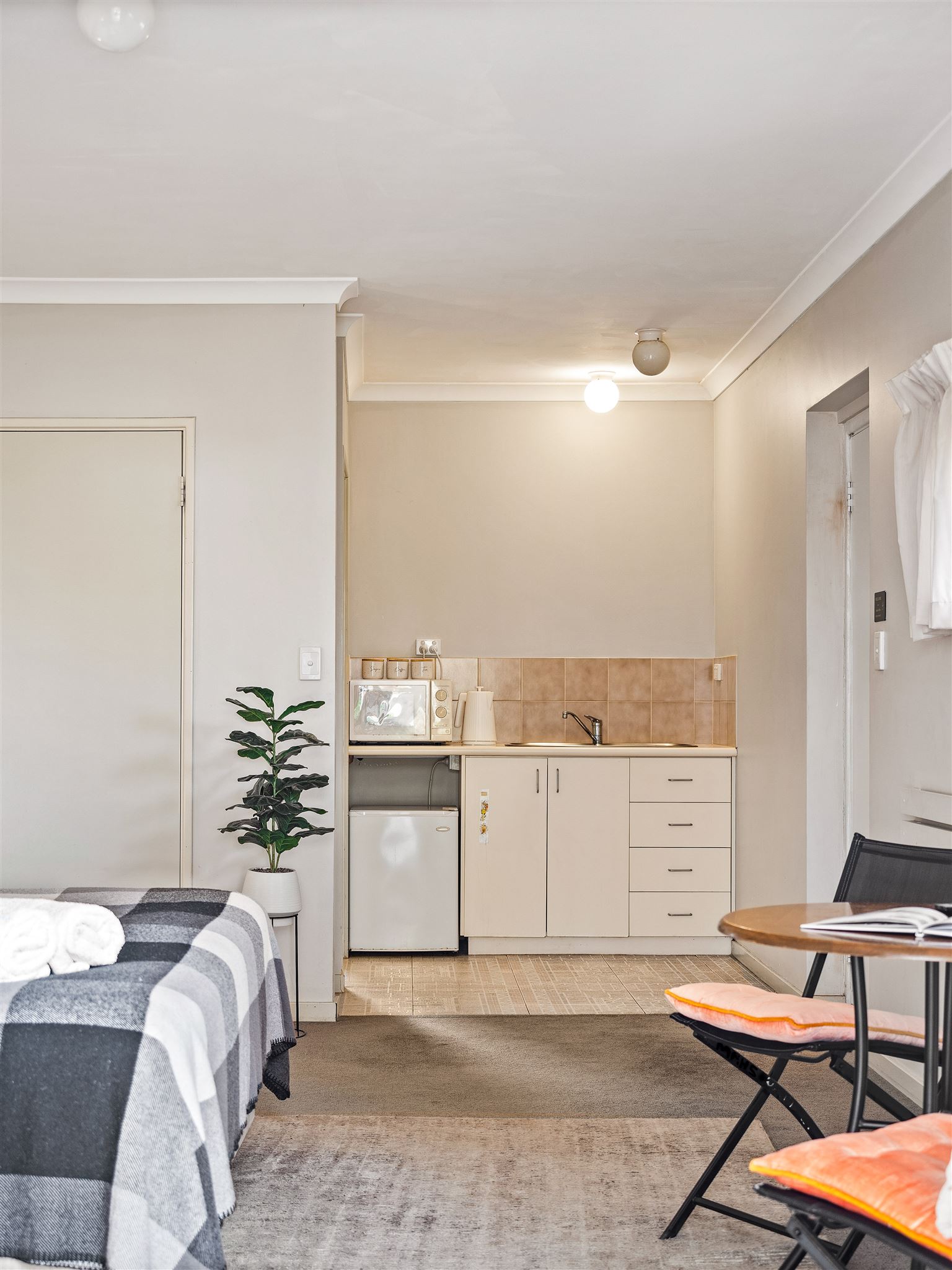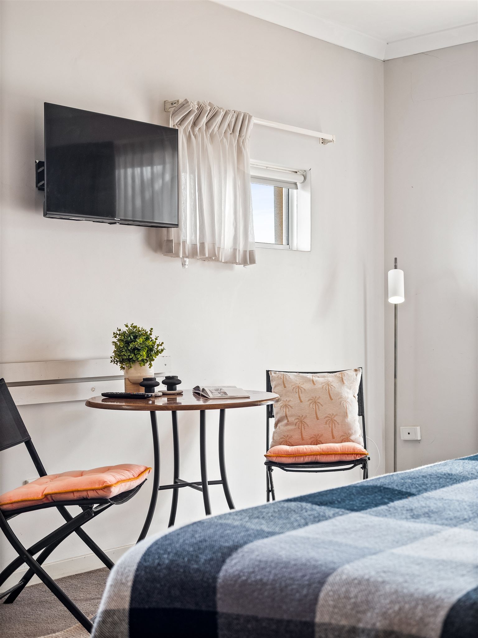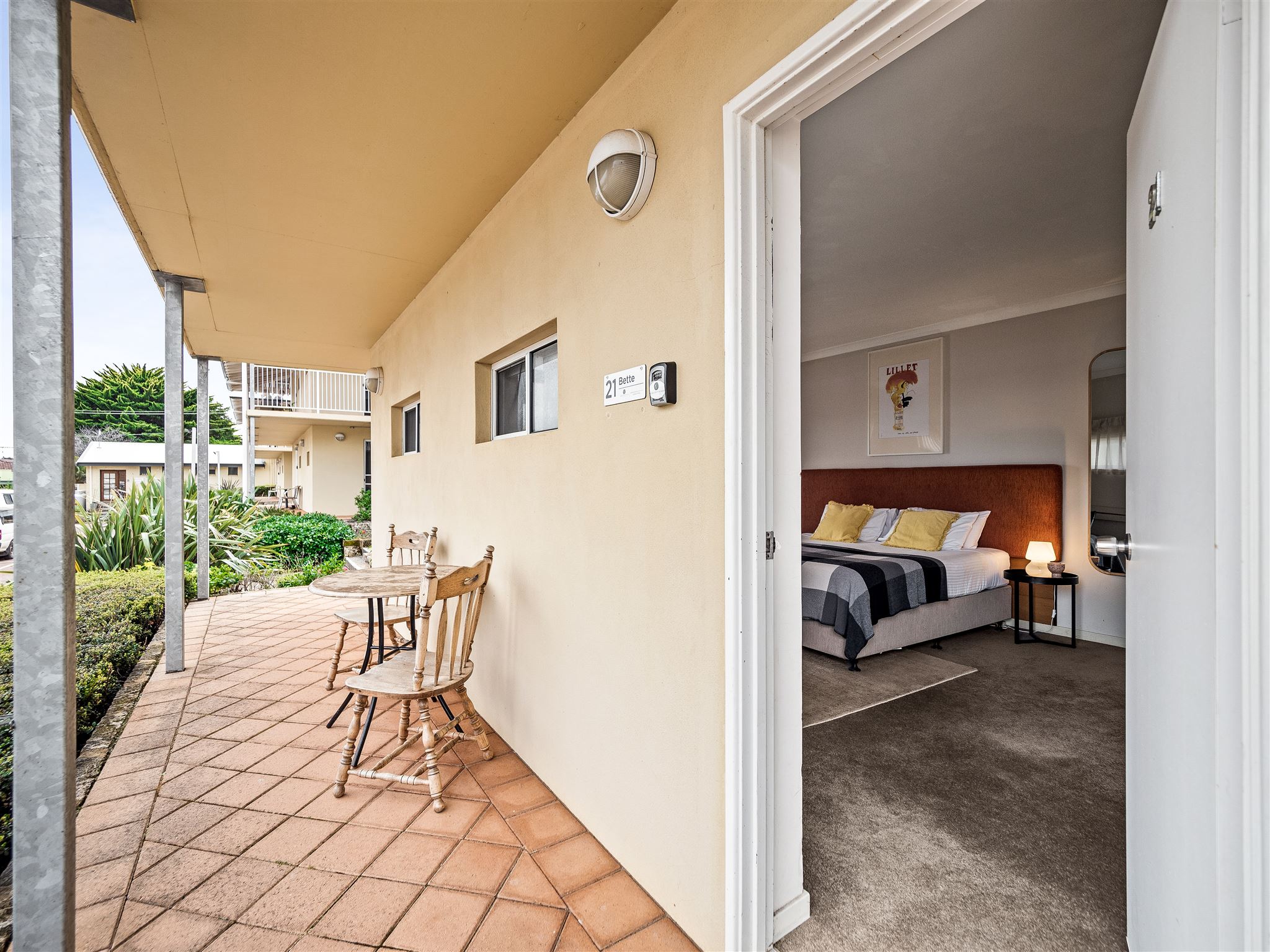 Stay in a great location at the centre of town, the first level apartment is perfect for one or two people. Fitted with all you will need for your holiday escape the open plan space is designed with a spacious king bed, ensuite, fresh linens & towels, a kitchenette including microwave & coffee and tea making facilities, sitting table and chairs and television, all designed to help you relax in the space and enjoy your holiday.