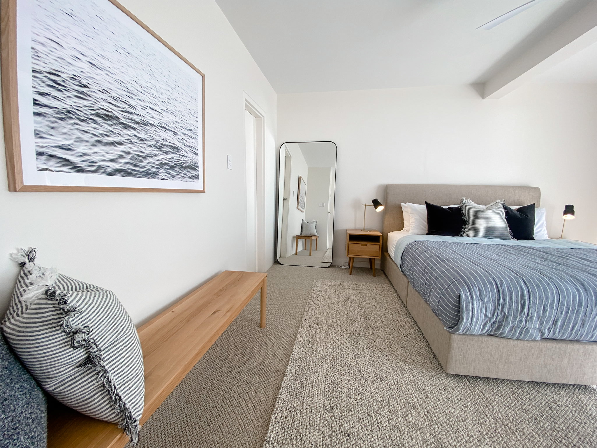 You can rise with the Sun in the morning, or keep the sun at bay for a well deserved sleep in. A short walk will take you to the ocean or the local lap pool for your morning swim, nearby there are many cafes to suit any breakfast option. Afternoons can be spent watching the sunset with a glass of wine in the large format daybed, before retiring to the well appointed king bedrooms. You will be taken care of with our Luxury bodycare products by Ena, hand washed linens, cotton bedding, and a kitchen setup to host you for any length of stay.
