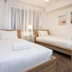 4 bedrooms – 2 x queen beds, 4 x king single beds