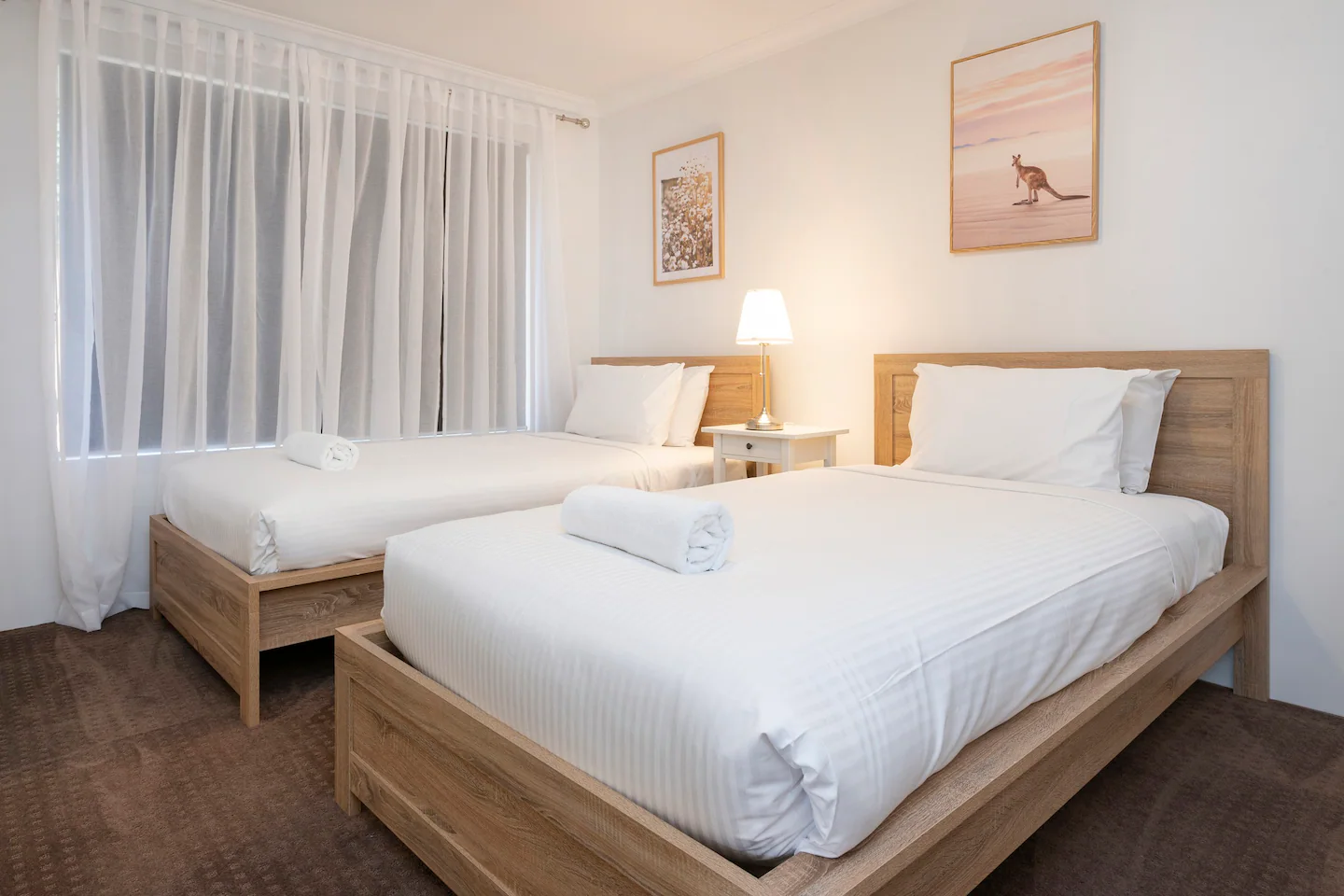 4 bedrooms – 2 x queen beds, 4 x king single beds