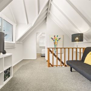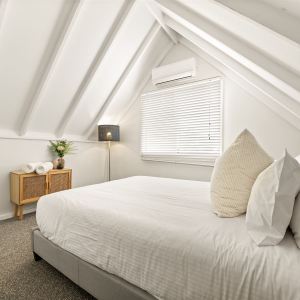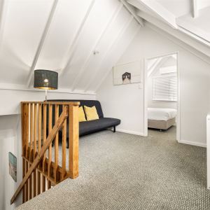 The cottage is a three-bedroom, double-story home. The open-plan kitchen, dining and living area leads out to the undercover porch, where you can utilize the BBQ for lunch or dinner. The master with king bed is on the ground floor and has an adjoining ensuite. The second bathroom features on the ground floor and combines as a laundry. The other two bedrooms with queen beds are located on the second level, between each is a small sitting area.