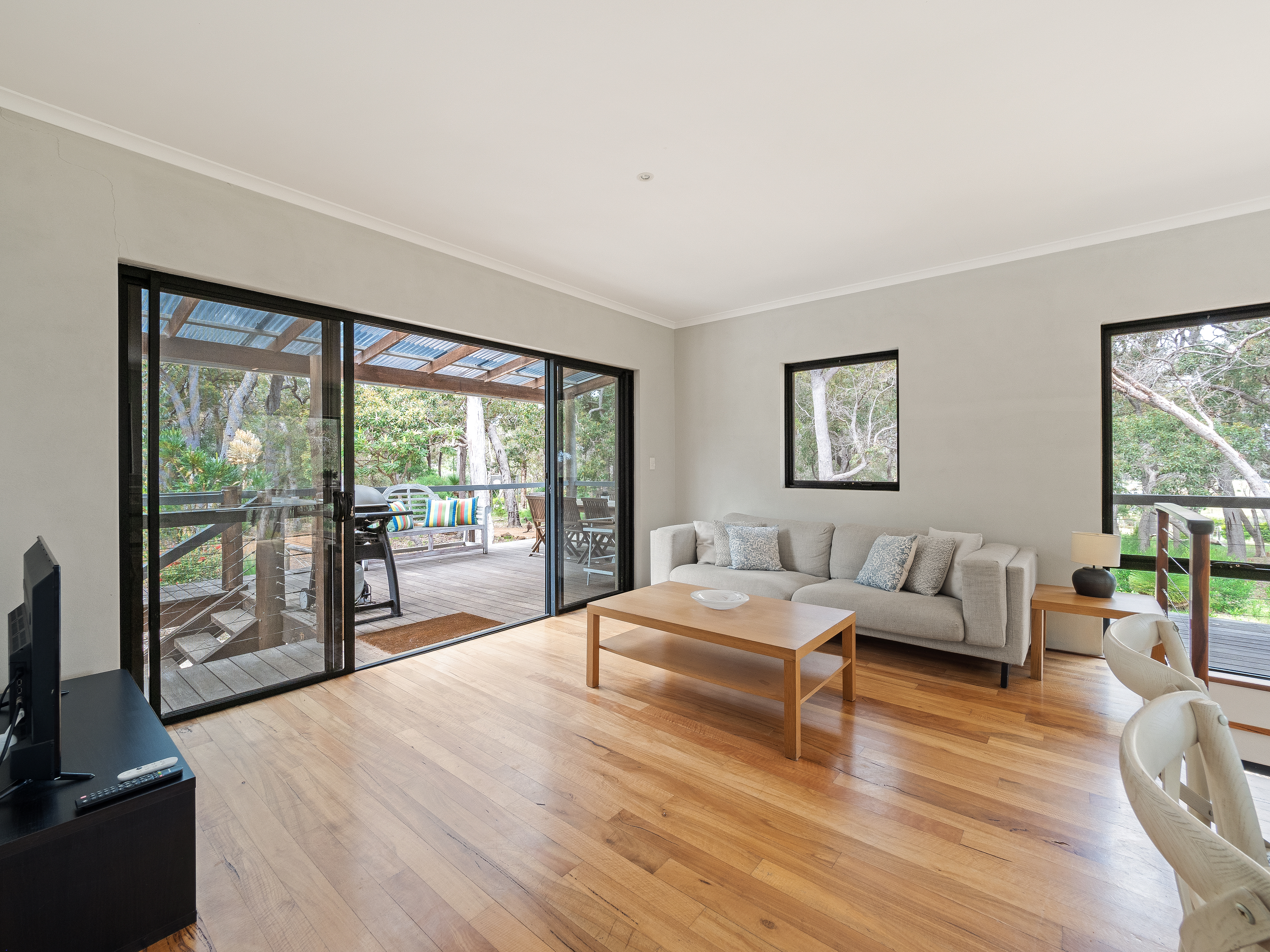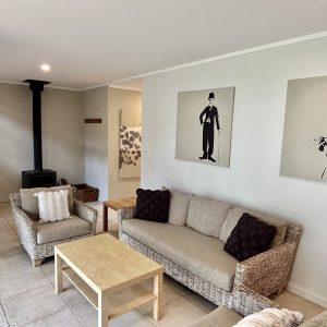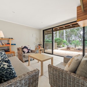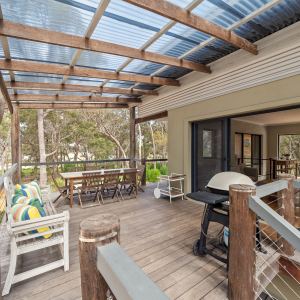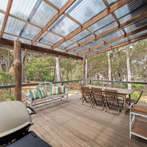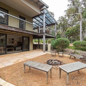 Relax in the spacious living area and enjoy modern amenities such as reverse cycle air conditioning, a fully-equipped kitchen, and an outdoor barbecue area. Gather around the firepit with family and friends, or take a refreshing outdoor shower after a day exploring the surrounding area’s natural beauty.