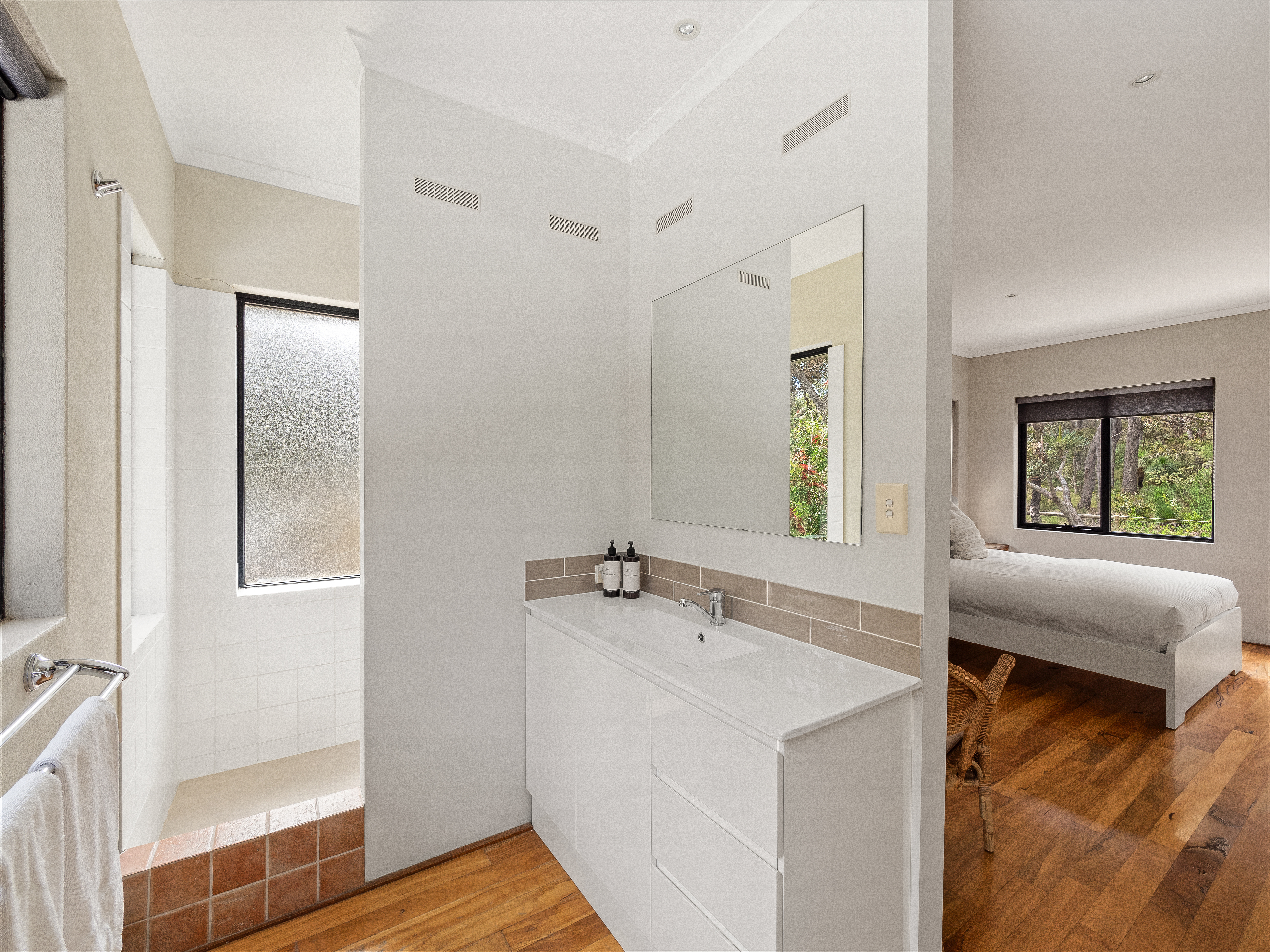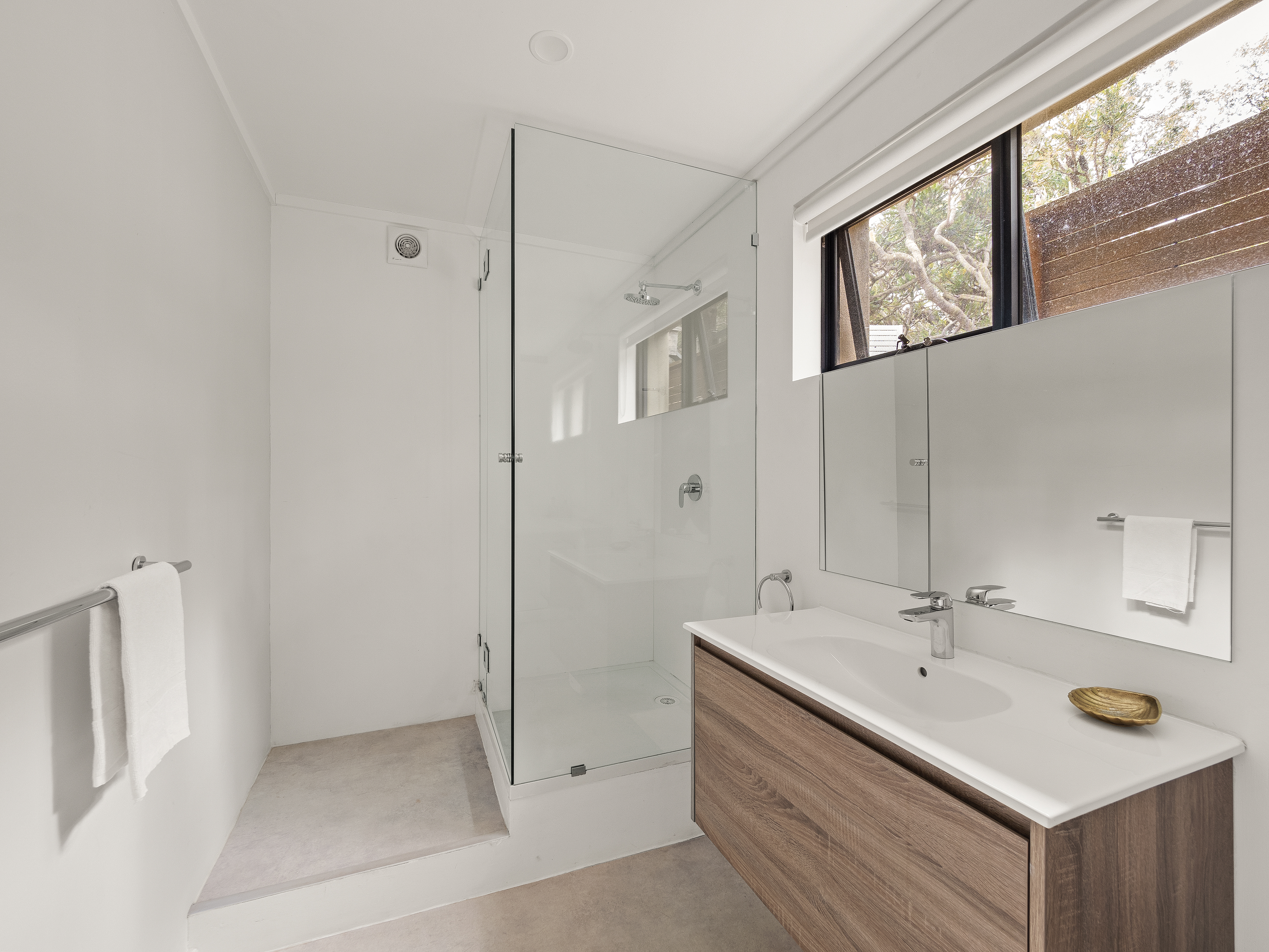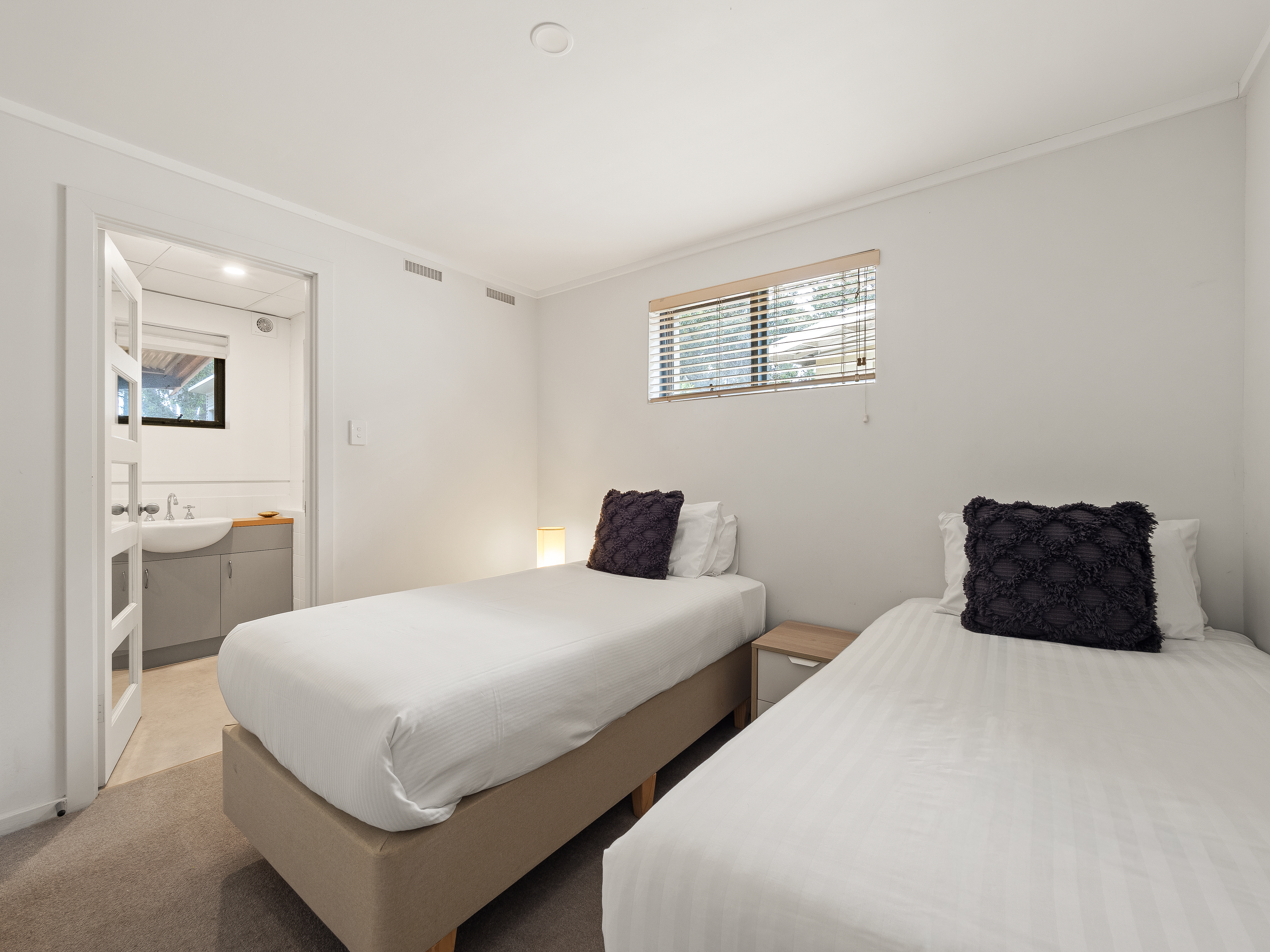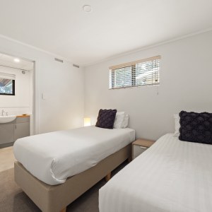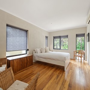 This two-story, three-bedroom, three-bathroom house boasts spectacular bush and valley views, and is hidden amongst the trees, providing a peaceful and secluded atmosphere. The master bedroom features a luxurious ensuite, and each bedroom is elegantly furnished for a comfortable stay.