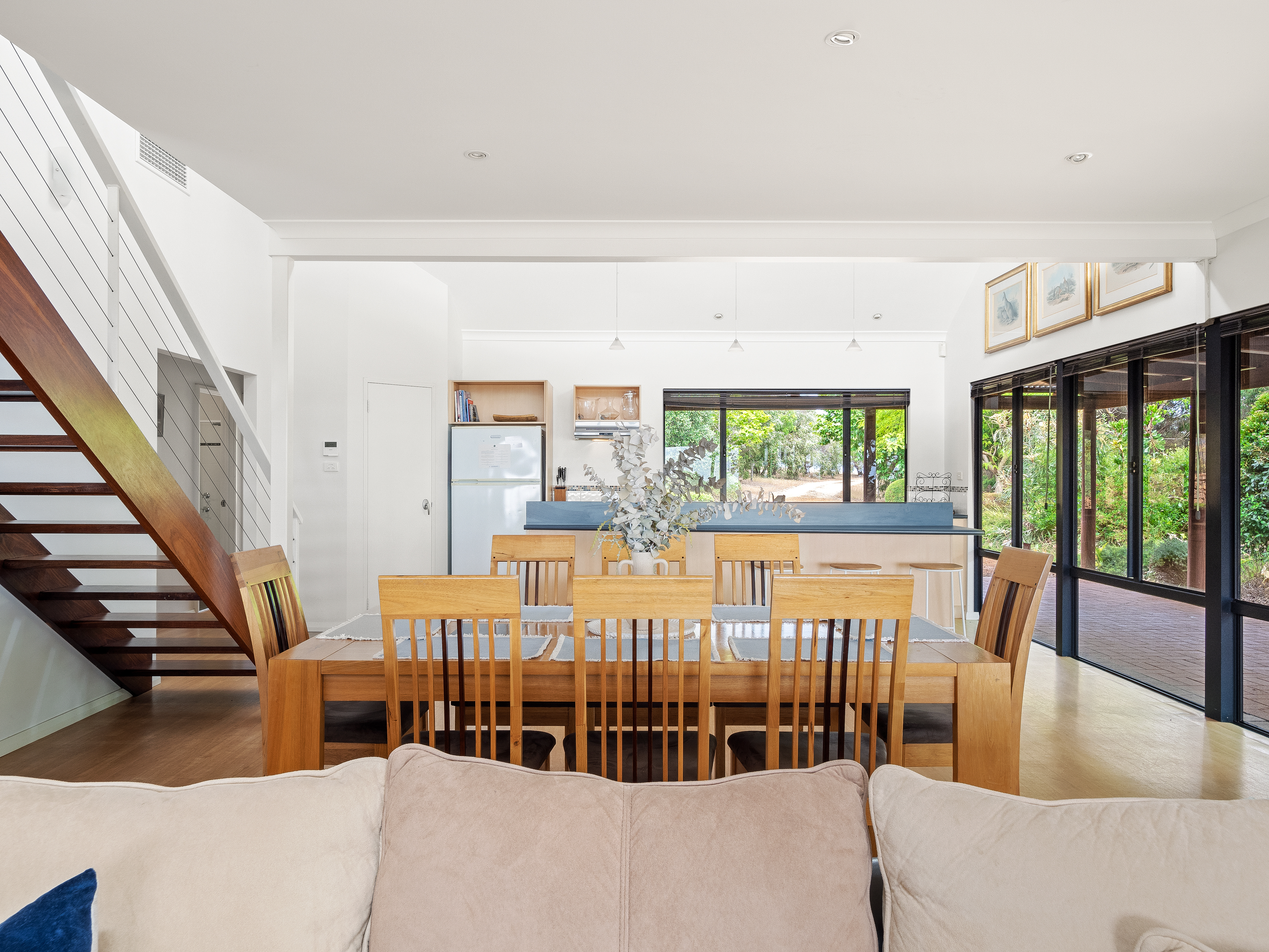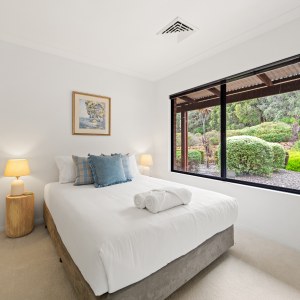 Sailors Hill Retreat delivers wide-open serenity with all the comforts of home. Set on nearly four hectares, this relaxed family escape sits between Dunsborough and Yallingup with soft sea views and bushland all around. Inside, a fully equipped chef’s kitchen connects seamlessly to indoor and outdoor dining zones, while two queen and two double bedrooms and two bathrooms offer space to retreat and recharge. There’s a variety of games for rainy days, and plenty of space outside to roam. Whether you’re sipping wine under the verandah or heading to the coast for a morning surf, this is the kind of place that holds you close and lets you breathe.