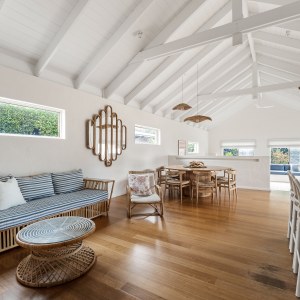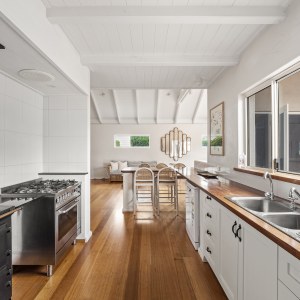 Saltwood includes three bedrooms: two with king beds, and one with a single bunk — ideal for kids or teens. There’s one central bathroom, plus an outdoor shower for post-beach rinses. The fully equipped kitchen has been recently upgraded with a gas cooktop, Nespresso-compatible pod machine, and everything you need to cook or entertain. The open-plan living area flows onto a private deck with outdoor dining, while split system AC in every room ensures year-round comfort.