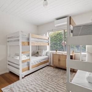 Each room has its own split system AC for year-round comfort. Please note: there is one shared bathroom, and the property is not pet-friendly. An outdoor shower is provided for rinsing off after the beach.