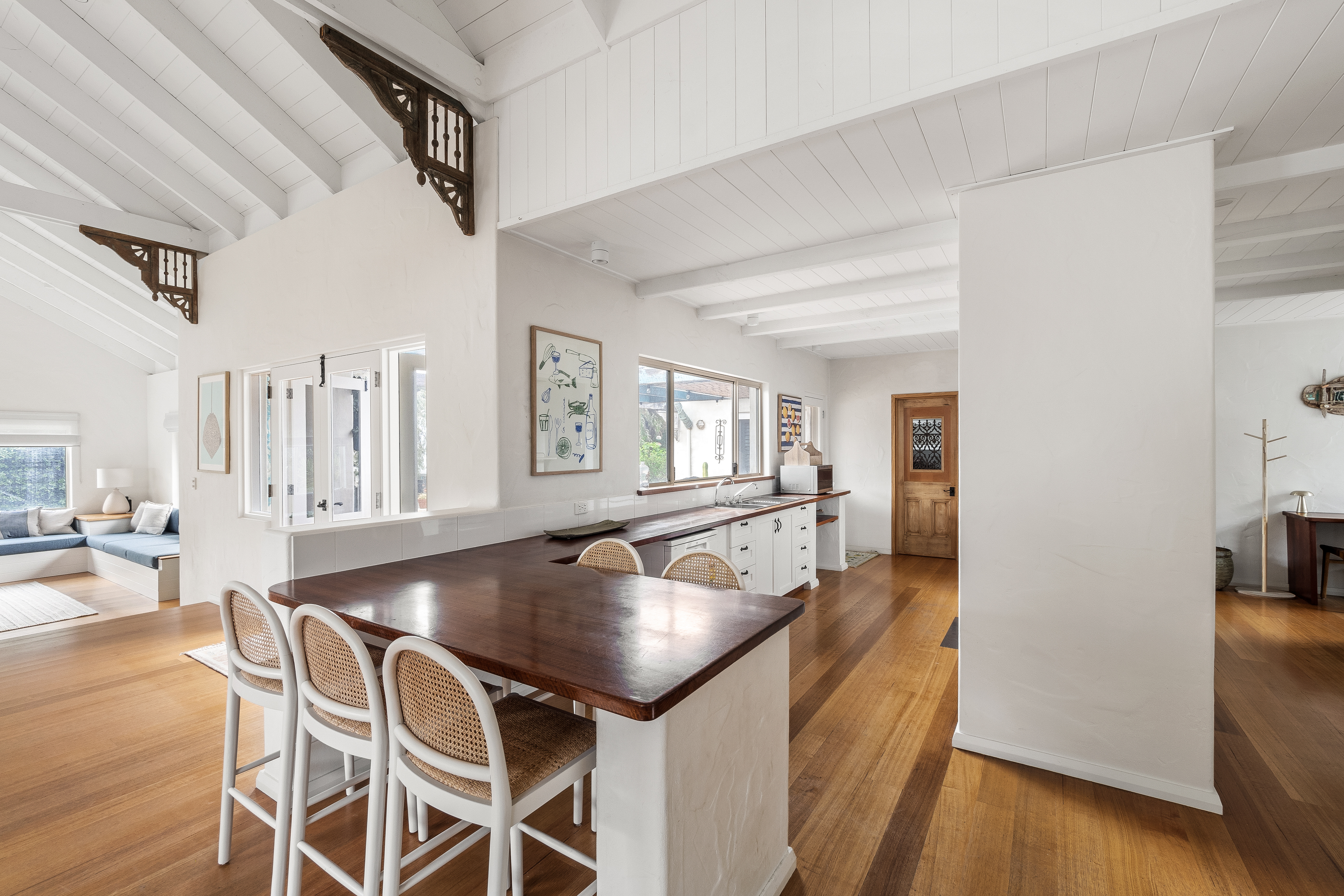 Saltwood includes three bedrooms: two with king beds, and one with a single bunk — ideal for kids or teens. There’s one central bathroom, plus an outdoor shower for post-beach rinses. The fully equipped kitchen has been recently upgraded with a gas cooktop, Nespresso-compatible pod machine, and everything you need to cook or entertain. The open-plan living area flows onto a private deck with outdoor dining, while split system AC in every room ensures year-round comfort.