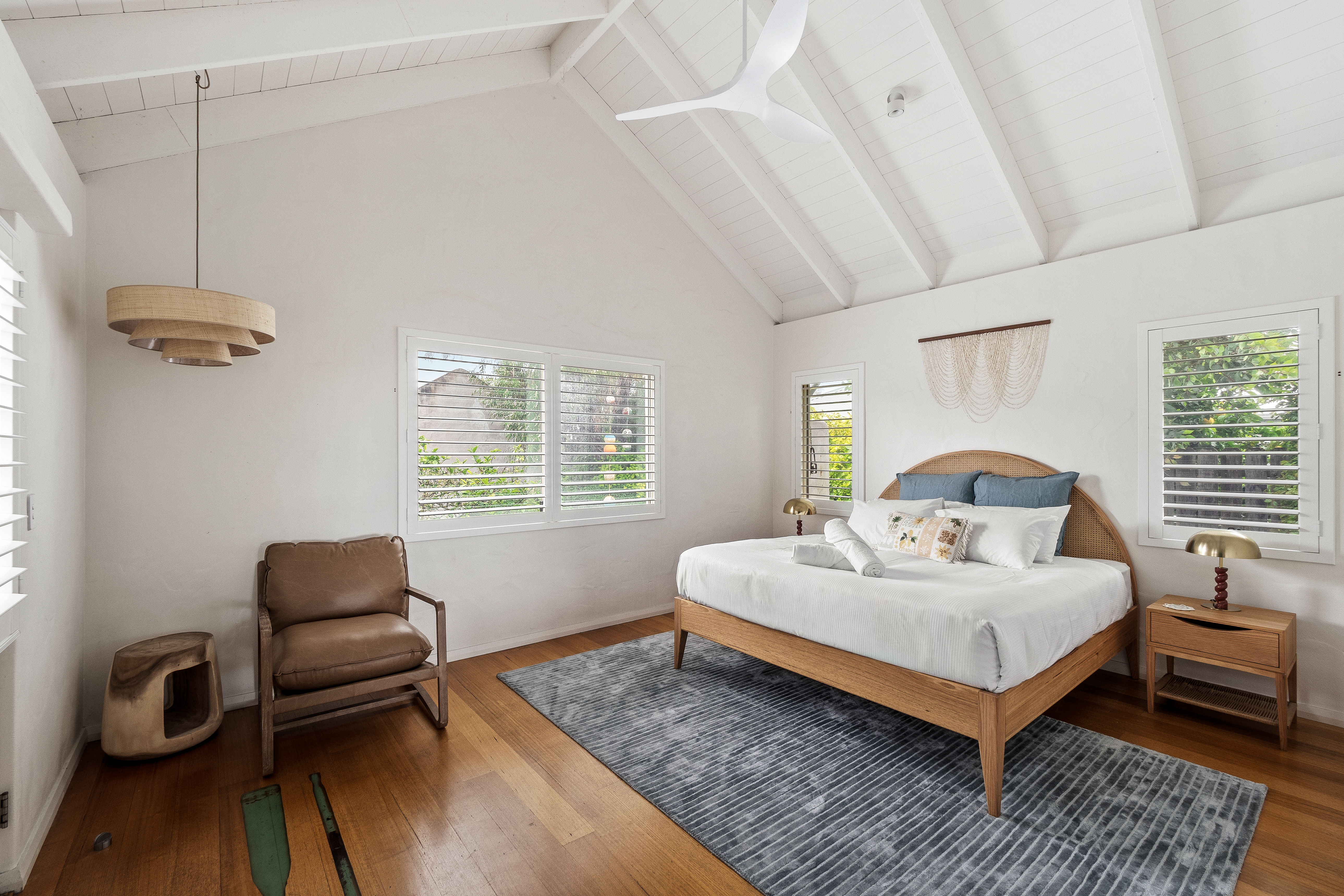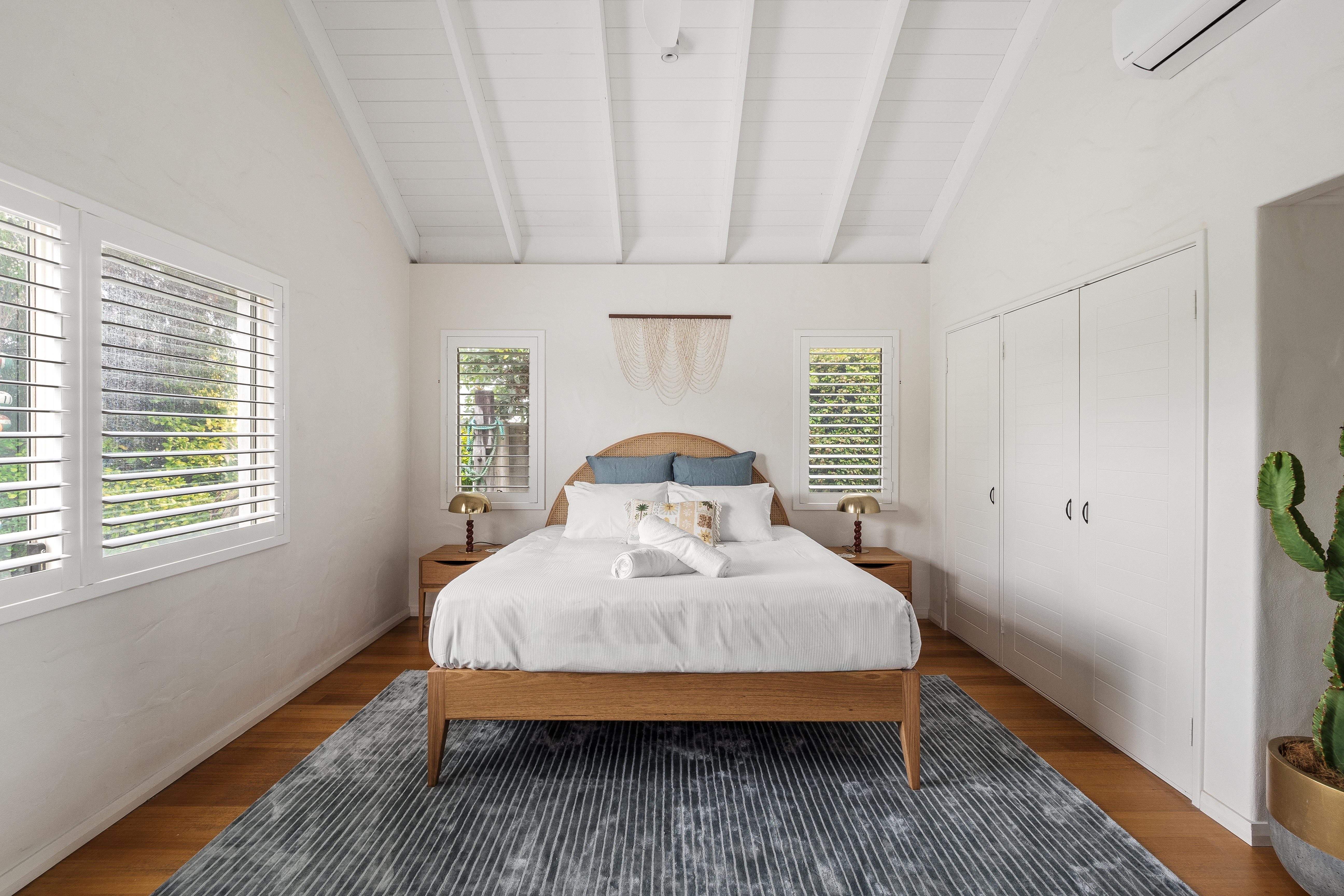 Each room has its own split system AC for year-round comfort. Please note: there is one shared bathroom, and the property is not pet-friendly. An outdoor shower is provided for rinsing off after the beach.