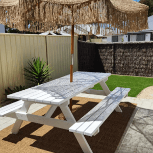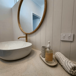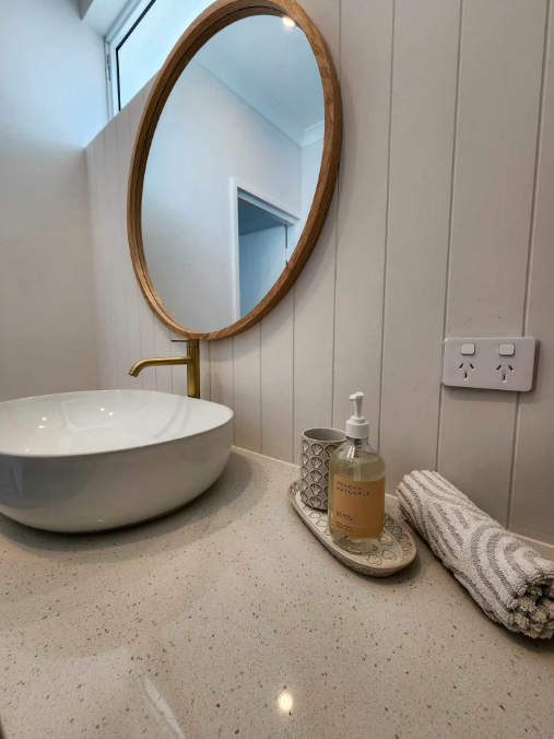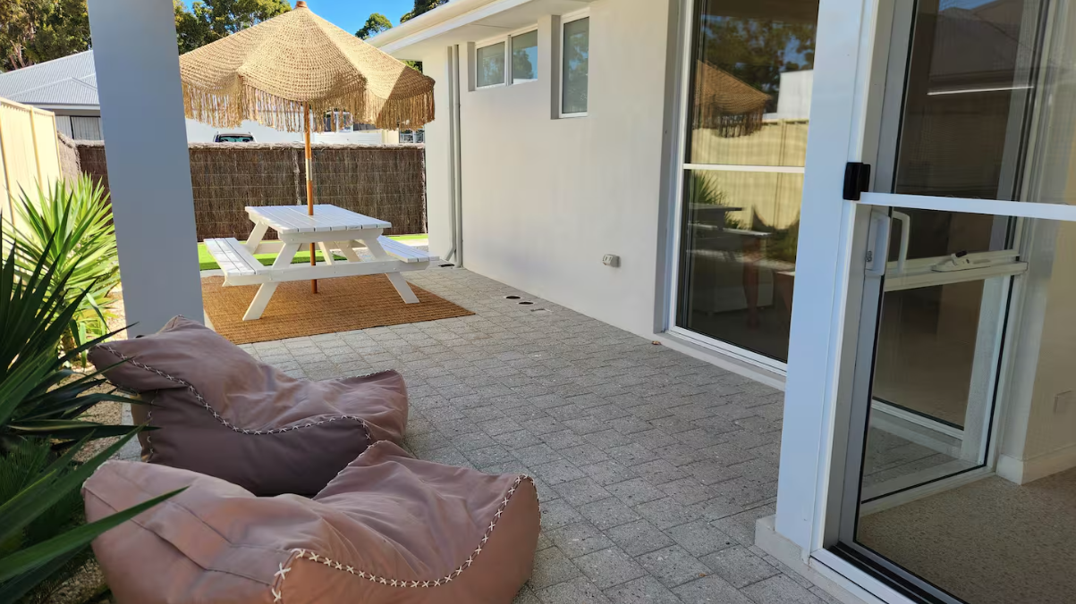 Comforts include our resort-style bathroom, with an oversized bathtub and brass tapware, quality new furnishings throughout and a relaxing outdoor space to catch the sun rays with your favourite drink in hand.
