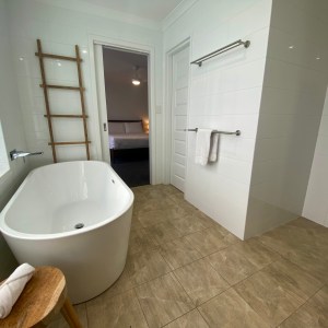 - Master Bedroom: Queen bed, private ensuite with a luxury freestanding bath, and a walk-in robe.