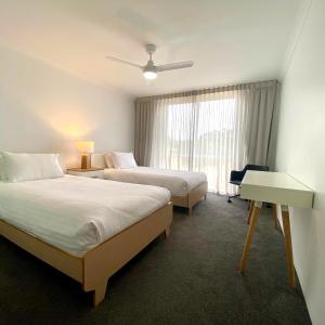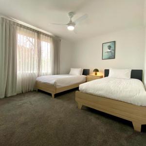 - Bedrooms 2: Queen beds, carpeted with built-in robes.
