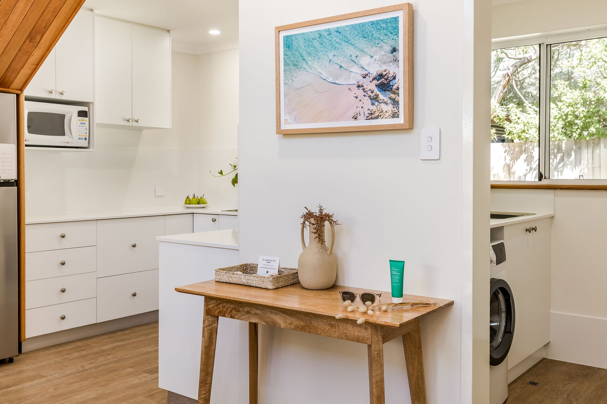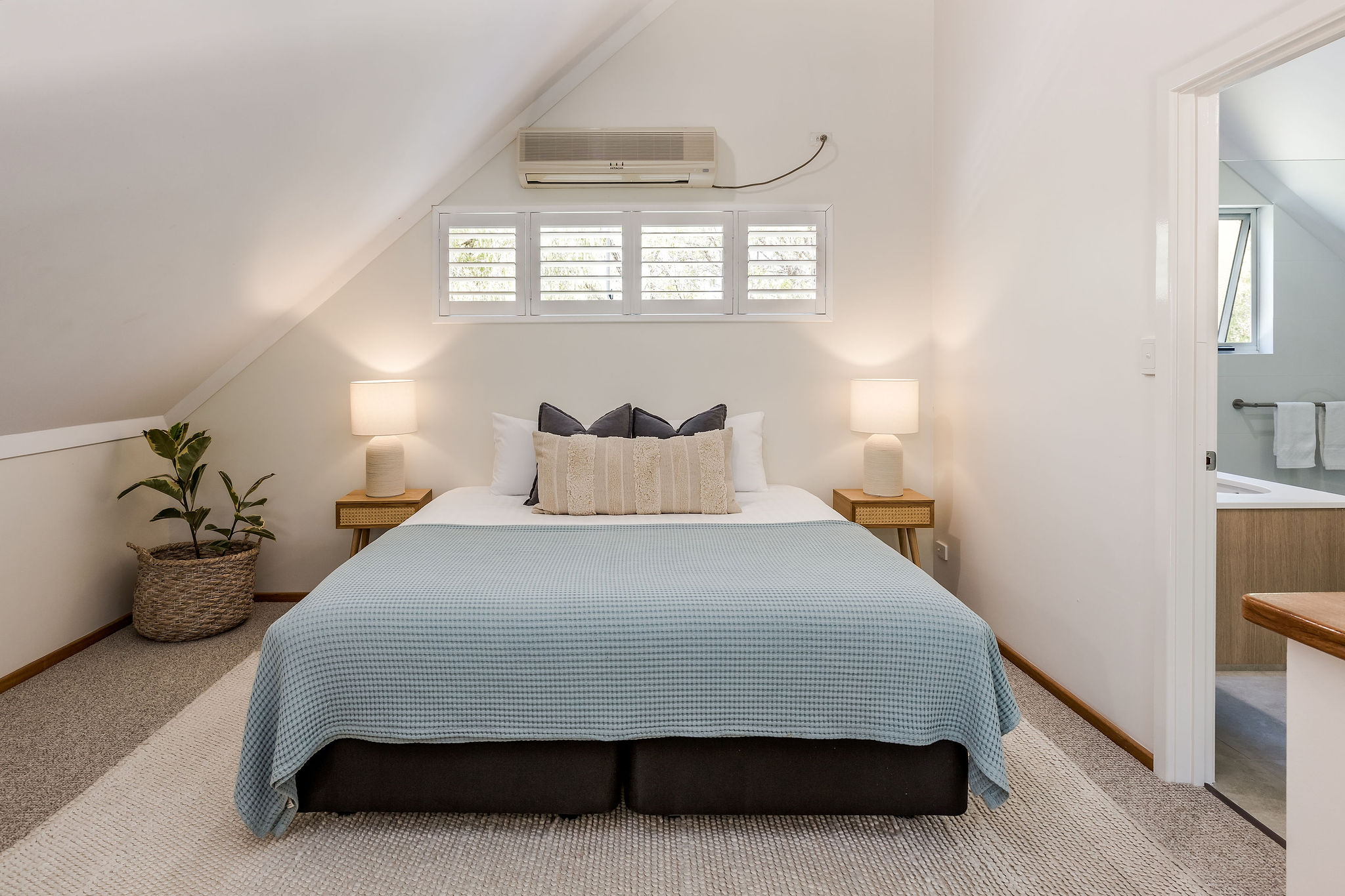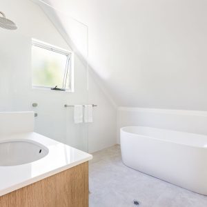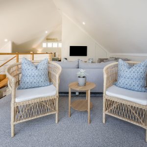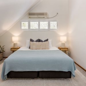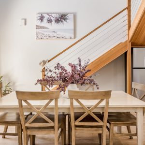 The property offers two king bedrooms and a third with two single beds all prepared with crisp linens. The master bedroom looks out over the open area to outside with private ensuite access, fitted with a spa bath, located on the second level.