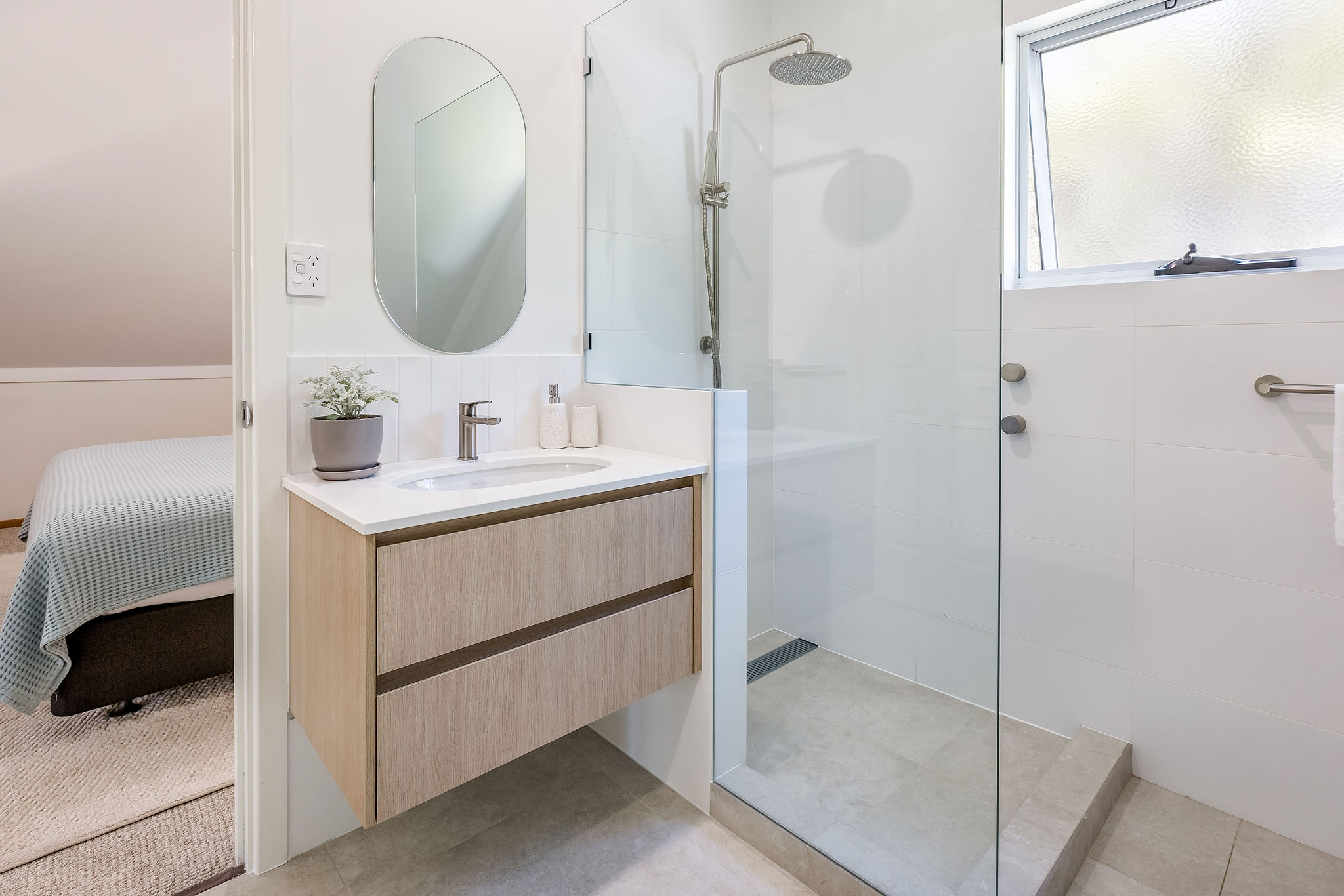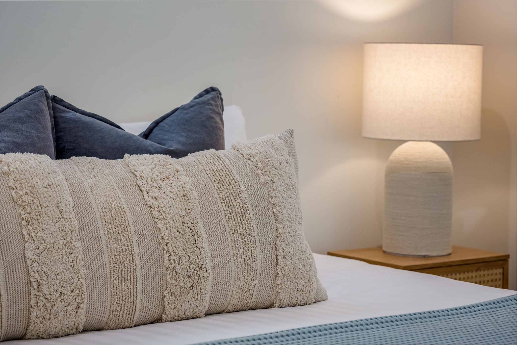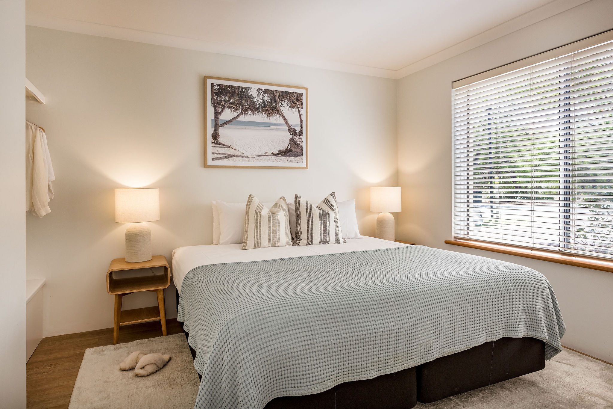 The property offers two king bedrooms and a third with two single beds all prepared with crisp linens. The master bedroom looks out over the open area to outside with private ensuite access, fitted with a spa bath, located on the second level.
