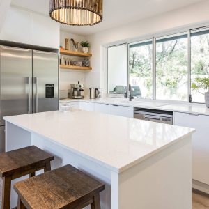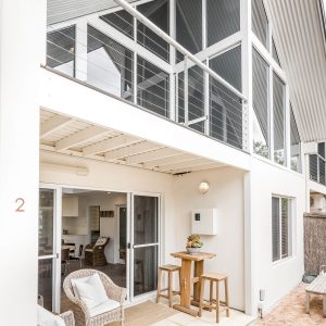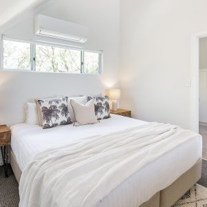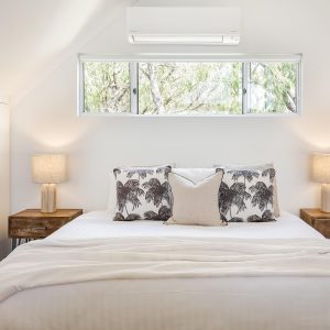 The property offers two king bedrooms and a third with two single beds all prepared with crisp linens. The master bedroom looks out over the open area to outside with private ensuite located on the second level.