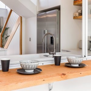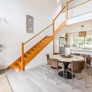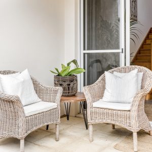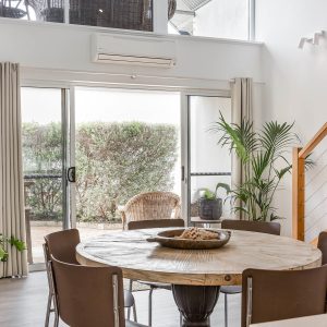 The home is well designed to accommodate two families, with the living area upstairs, and seating on the balcony, read while the kids watch a movie. This home is designed to allow the morning and evening light, and to capture the cool evening breezes, with air conditioning and heating throughout. A fully equipped kitchen, compliments the space & comfortable sitting areas with easy access to the outdoor spaces to sit or where you can barbecue in amongst the peppi trees. Each living space has TVs with Netflix connected.