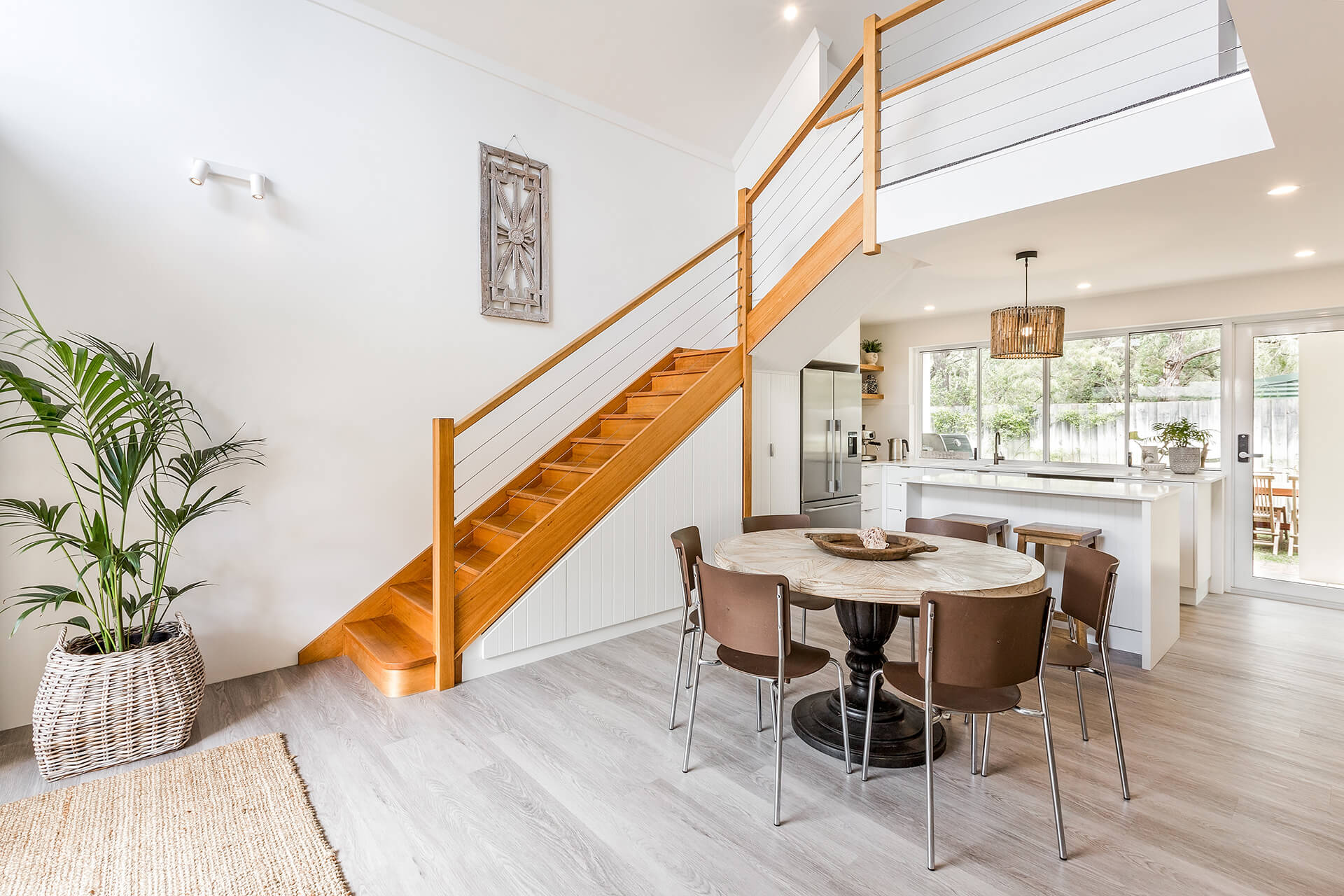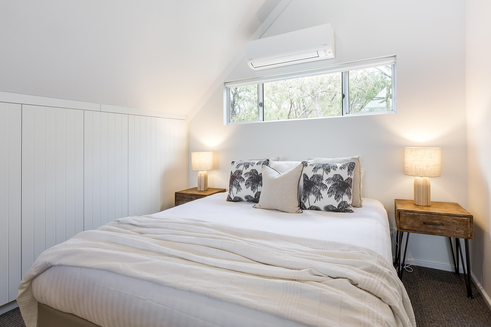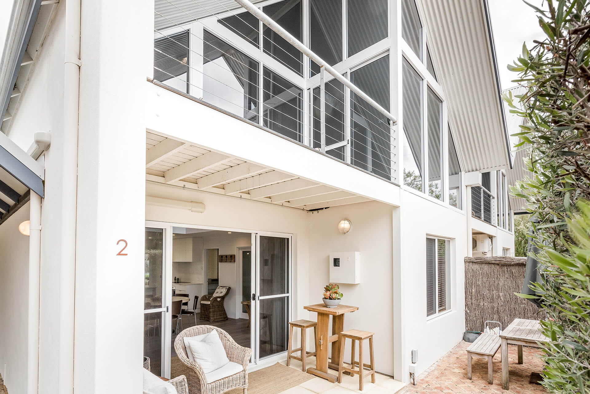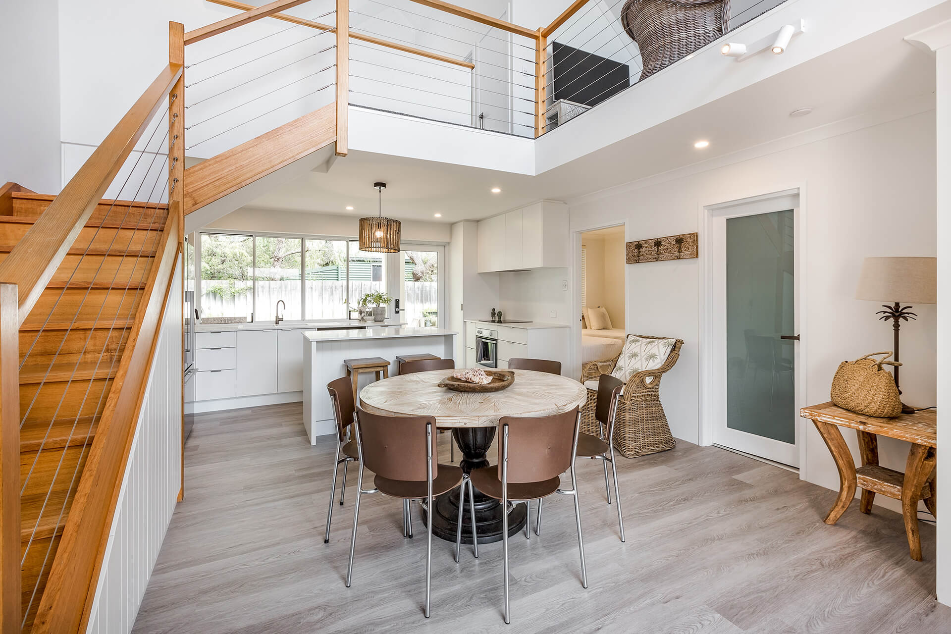 The property offers two king bedrooms and a third with two single beds all prepared with crisp linens. The master bedroom looks out over the open area to outside with private ensuite located on the second level.