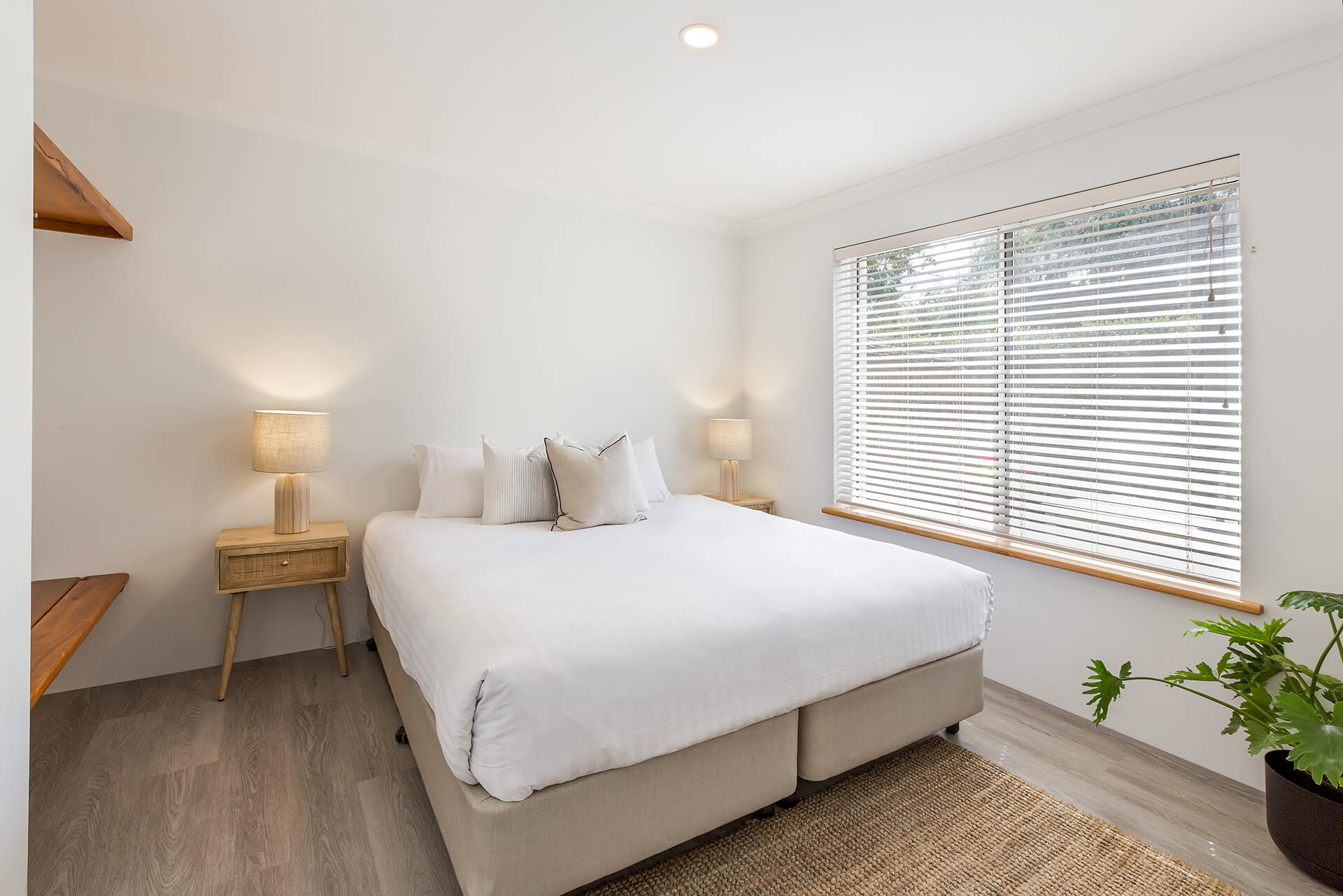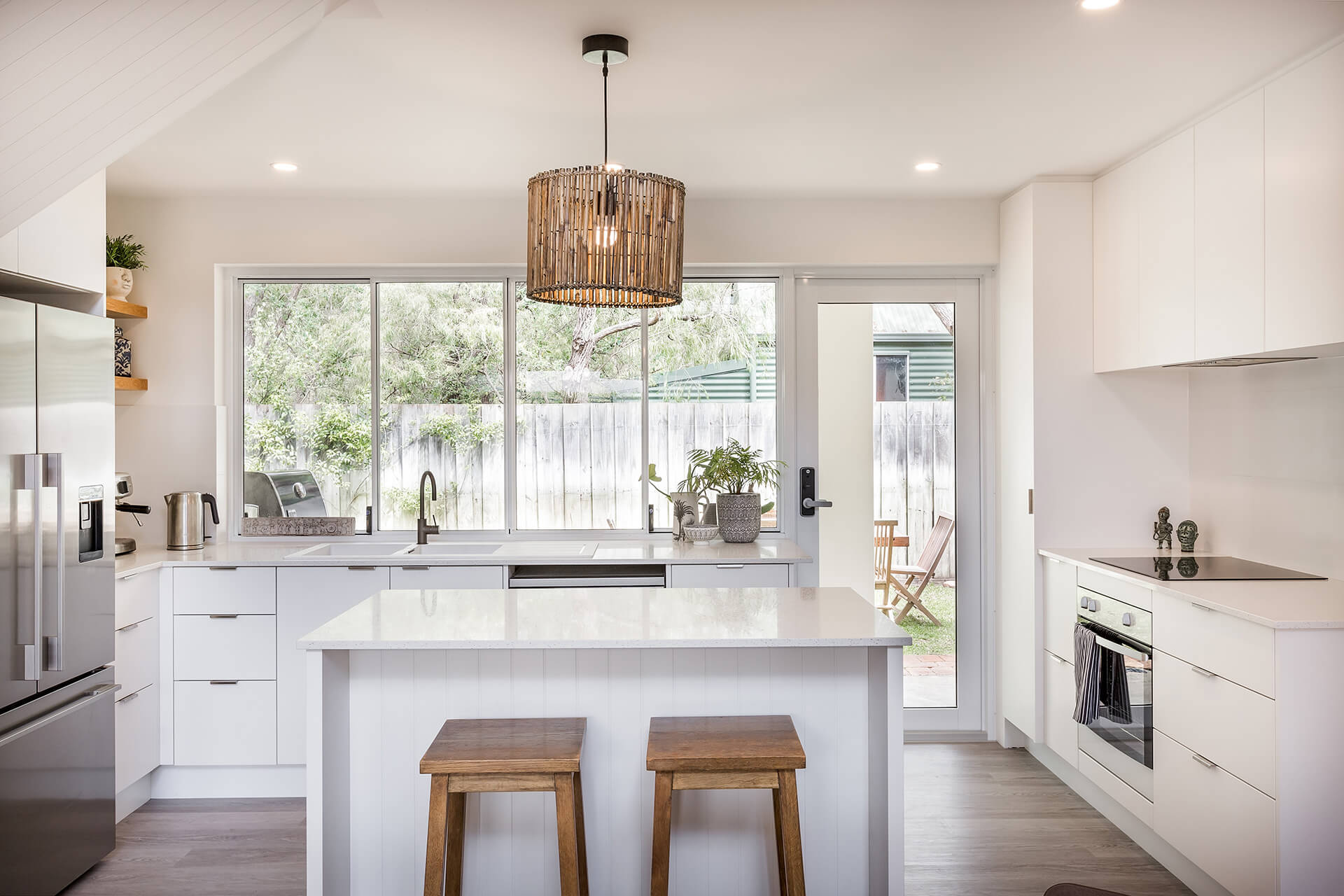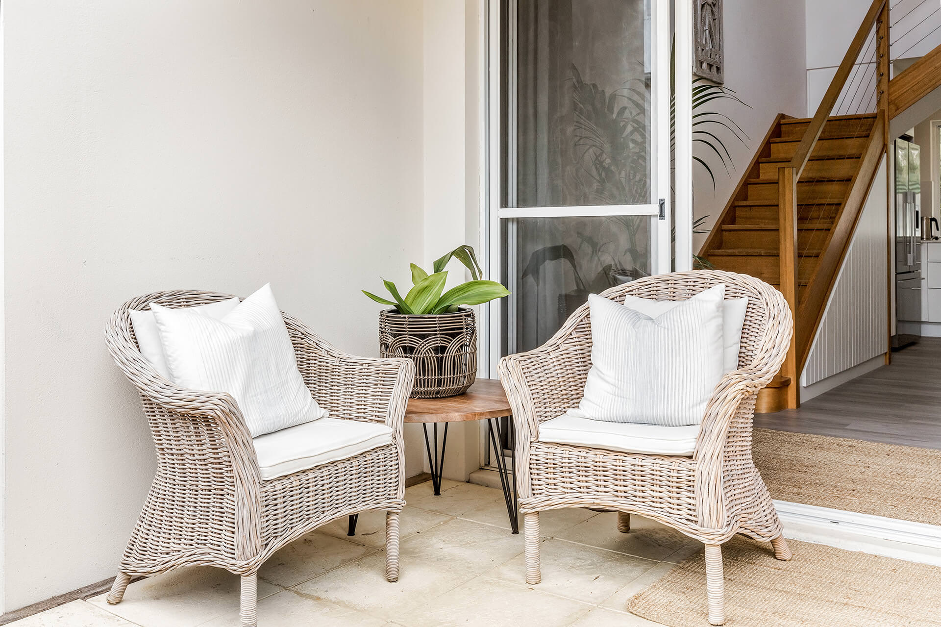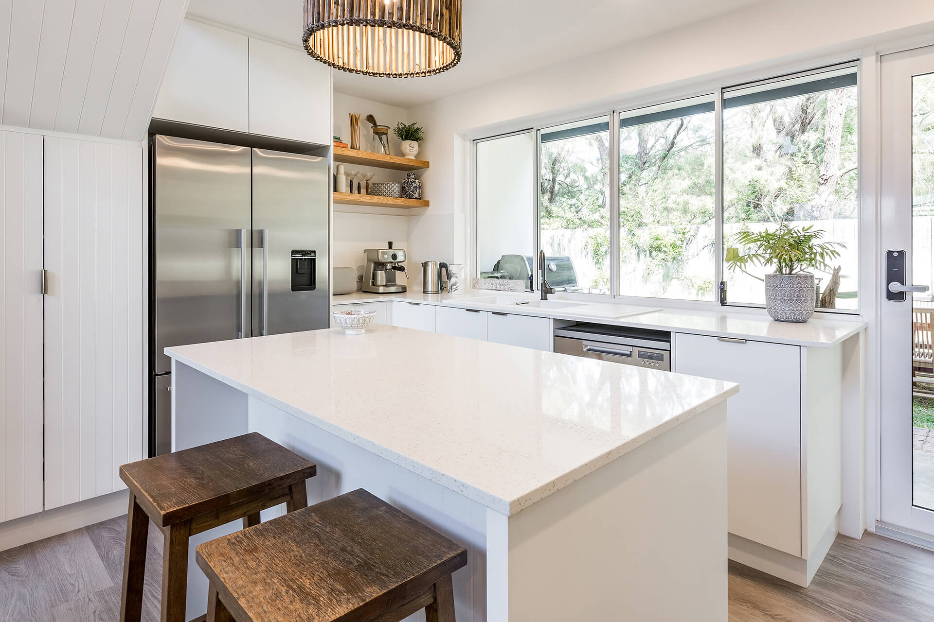 The property offers two king bedrooms and a third with two single beds all prepared with crisp linens. The master bedroom looks out over the open area to outside with private ensuite located on the second level.