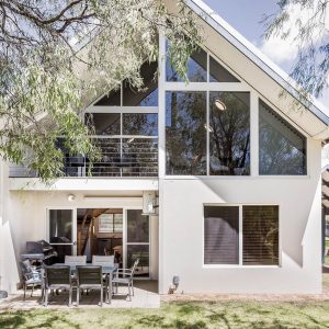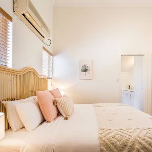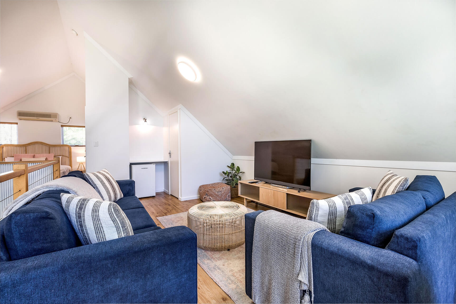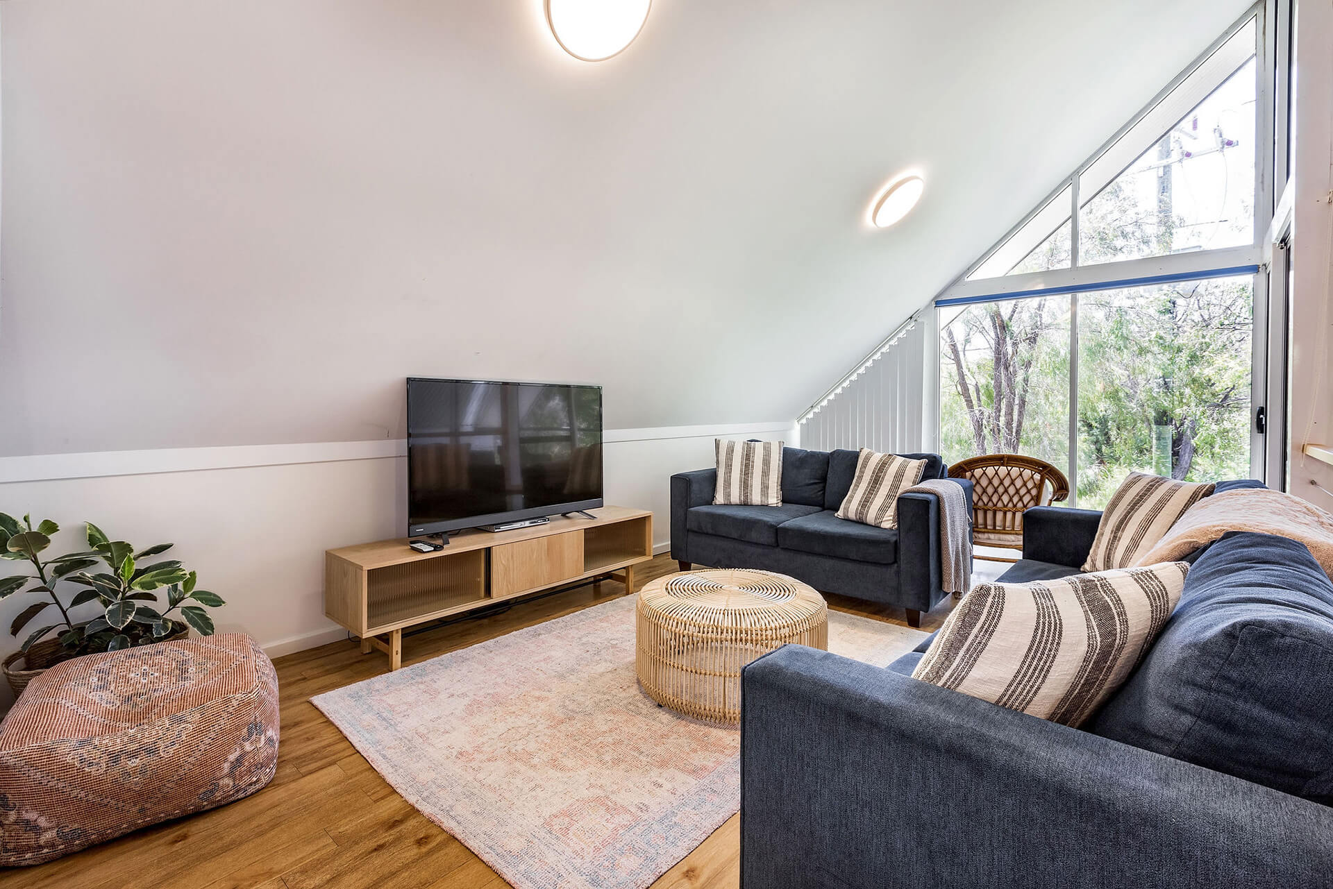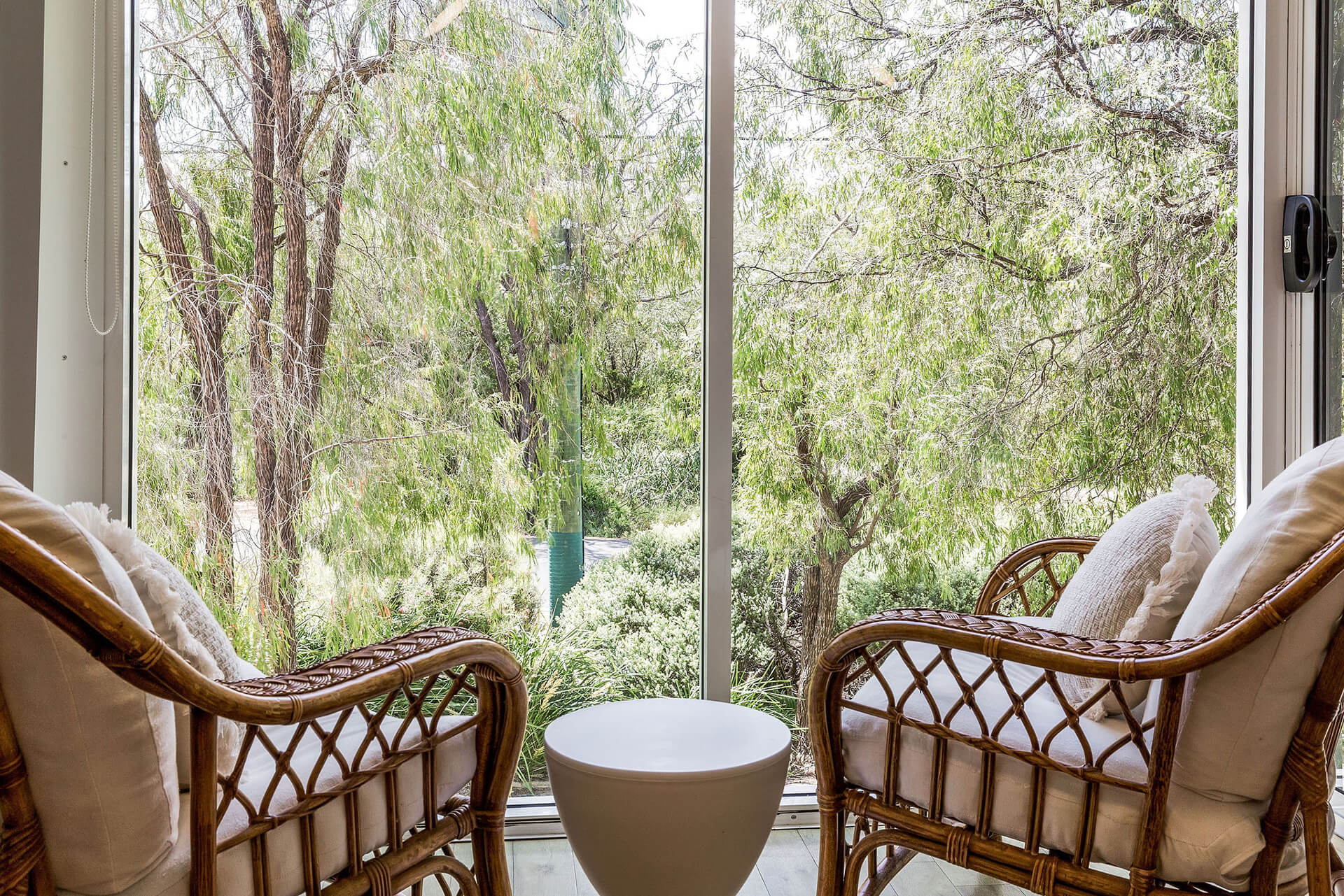 The home is well designed to accommodate two families, with living areas on both levels, one for the kids and one for the adults. This home is designed to allow the morning and evening light, and to capture the cool evening breezes, with air conditioning and heating throughout. A fully appointed kitchen with the latest modern appliances, including coffee machine, compliments the spacious & comfortable sitting areas with easy access to the outdoor spaces to sit or where you can barbecue in amongst the peppi trees. Each living space has couches you can sink into and TVs with Netflix connected. Upstairs offers a second space to relax and watch a movie or read your book.