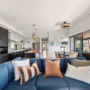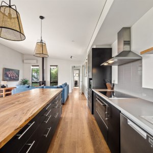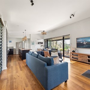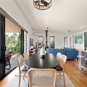 This thoughtfully designed property offers three bedrooms and two bathrooms, including a master suite with a private ensuite, kitchenette, and deck access. Perfectly suited for up to 8 guests, it features Blackbutt timber floors, Marri benches, and high-quality furnishings throughout. The open-plan kitchen and dining area flow seamlessly into the cozy living space with a Masport wood stove, creating an inviting atmosphere for gatherings. Step outside to find multiple outdoor spaces for entertaining and relaxation. Enjoy morning coffee on the deck, evening stories around the firepit, or cook up a feast on the BBQ. The low-maintenance native garden and private walking trail enhance the connection to the surrounding natural beauty.