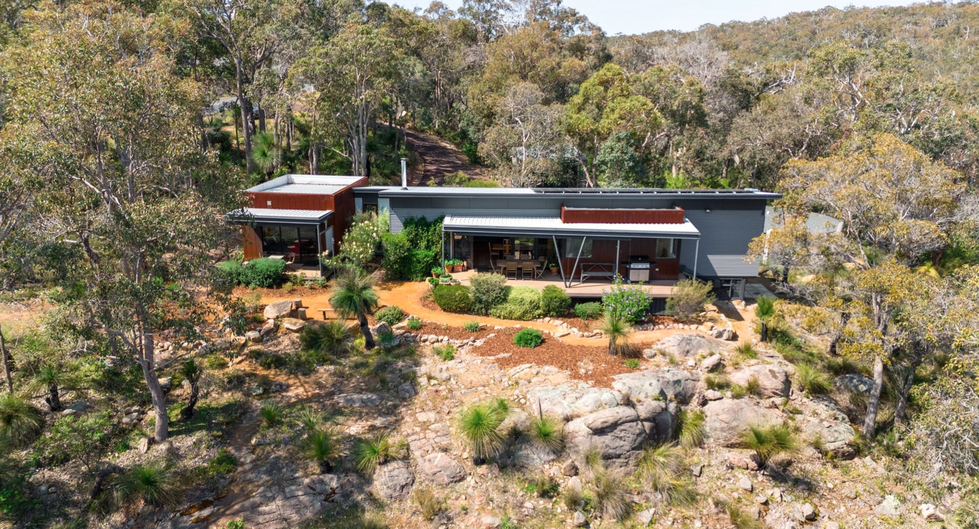 Welcome to Wildflower Ridge, a custom-built haven nestled in the heart of Yallingup. Designed for relaxation and surrounded by nature, this home offers a unique blend of rustic charm and modern comfort. Set on a sprawling bush block with granite outcrops and native flora, it’s the ideal getaway for families or groups seeking serenity and adventure.